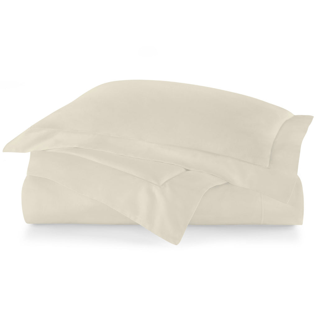 The Peacock Alley Soprano Sateen duvet cover is finished with a classic satin stitch hem and is made of 420-thread-count, cotton.