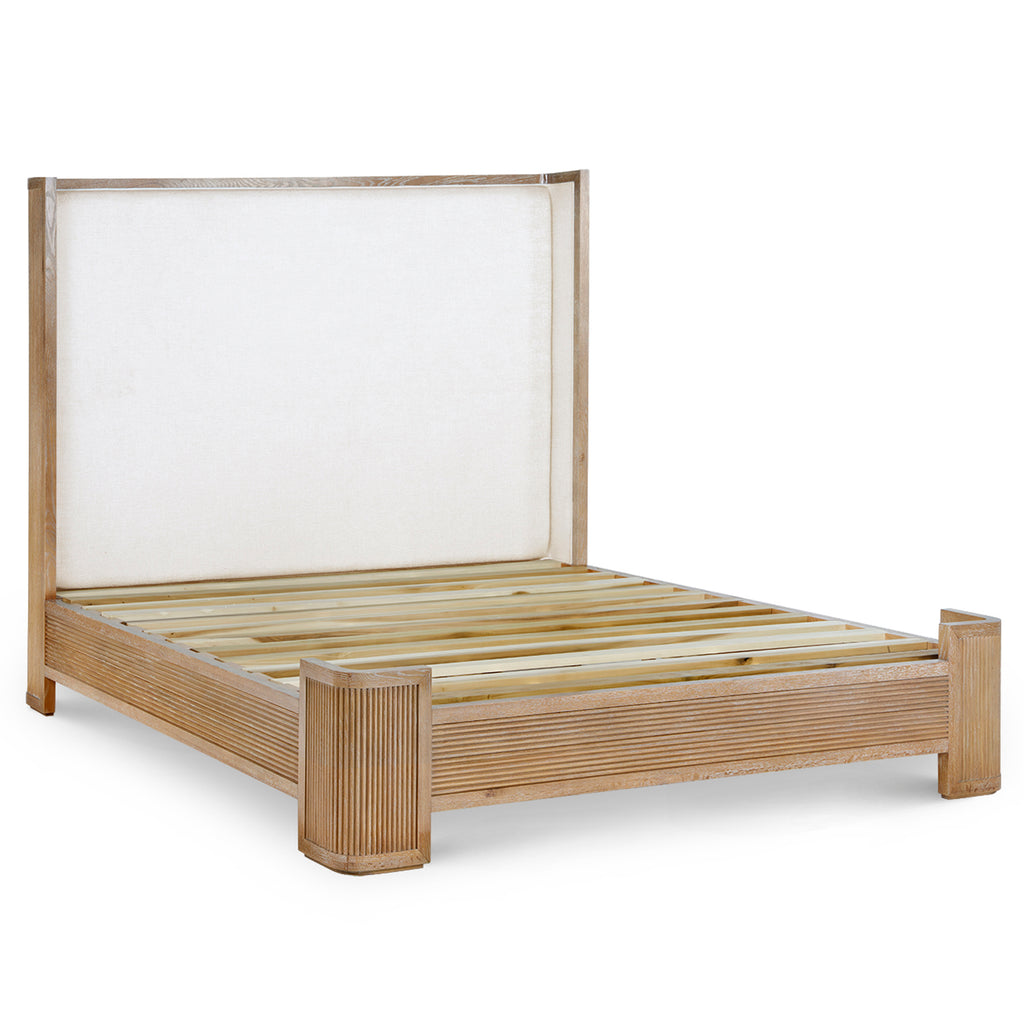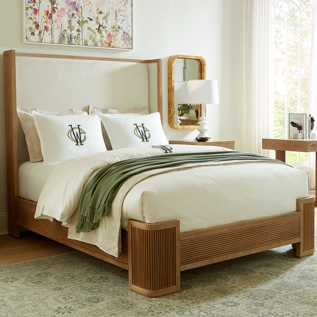 The Villa and House Atlas Bed combines architectural presence with soft comfort in a single, cohesive design. Featuring a sculpted wingback headboard upholstered for added warmth and support, it balances tailored upholstery with the tactile beauty of fluted oak. The bed’s frame is fully clad in fluted panels, creating a striking visual rhythm. Rich in texture and crafted from durable wood, the Atlas Bed is a bold yet refined anchor for the bedroom, offering a distinctive blend of craftsmanship and contemporary style.
