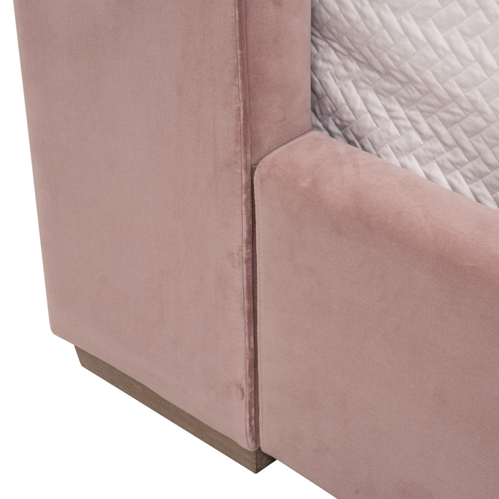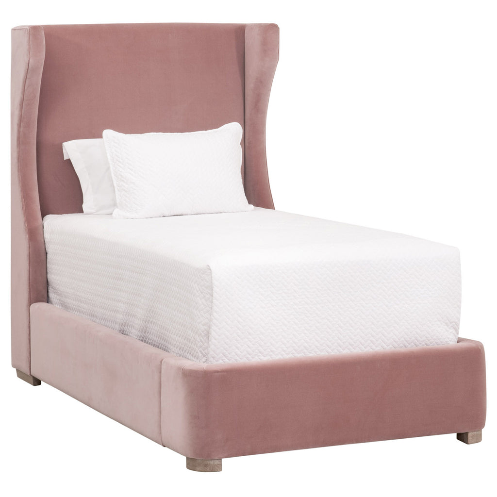 Transform your bedroom into a haven of style and comfort with the Balboa Twin Bed by Essentials For Living. This transitional-style upholstered bed features a wood frame with exposed natural gray oak feet, which adds a touch of sophistication to its classic look. The Petal Velvet upholstery, a blend of cotton and polyester, enhances the bed's plush and regal design. Additionally, the elegant headboard is constructed with a wingback design and edge piping detail, while the curved footboard rounds out the silhouette and complements the winged back. The removable metal frame European slat system ensures stability and support, making this twin bed a perfect blend of aesthetics and functionality for a restful night's sleep.