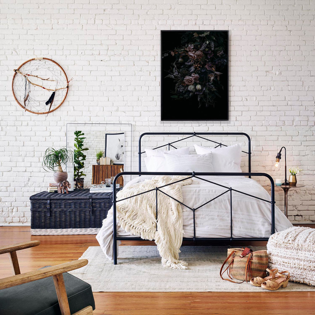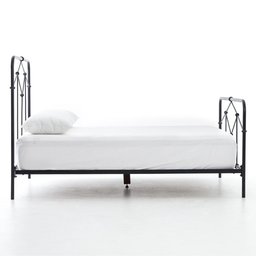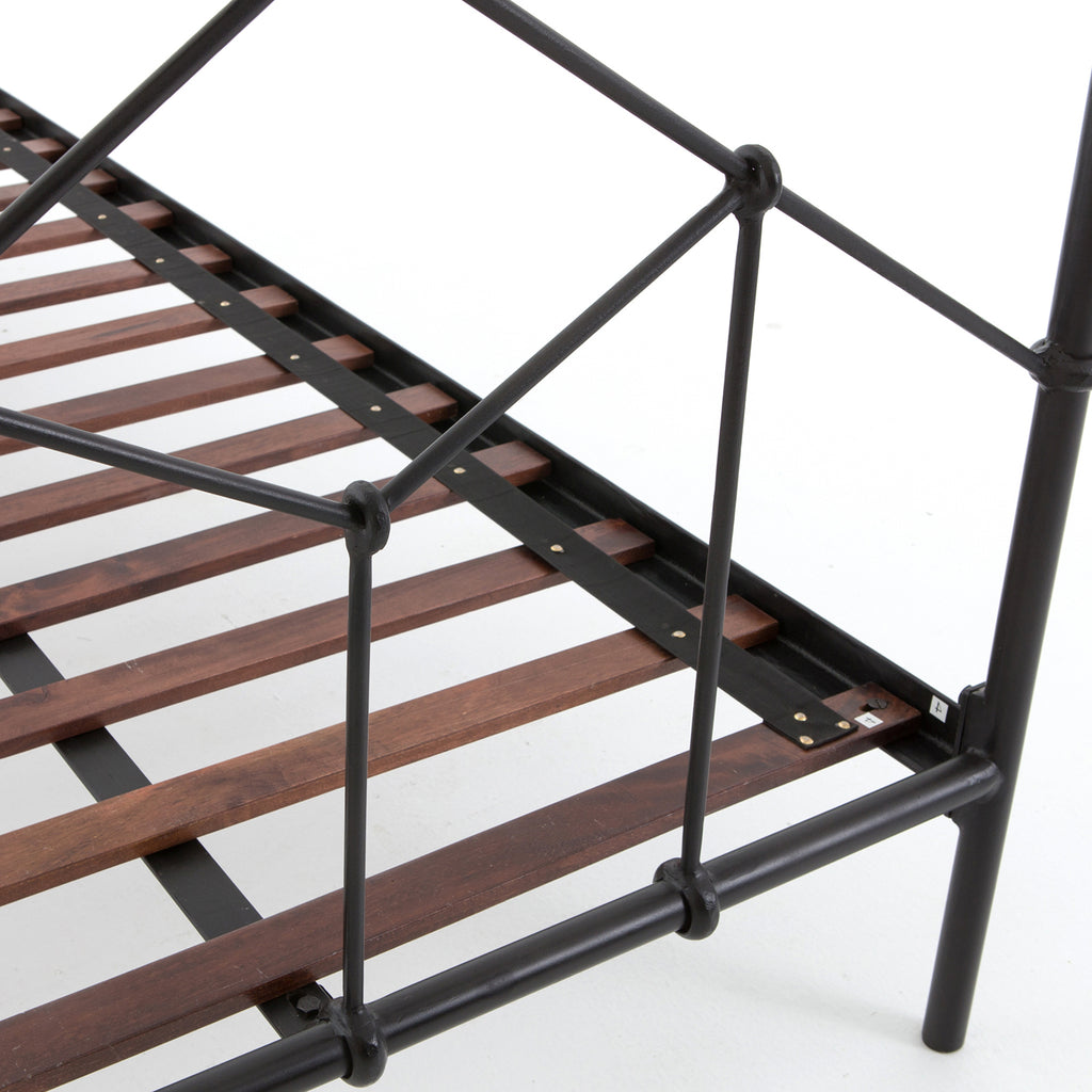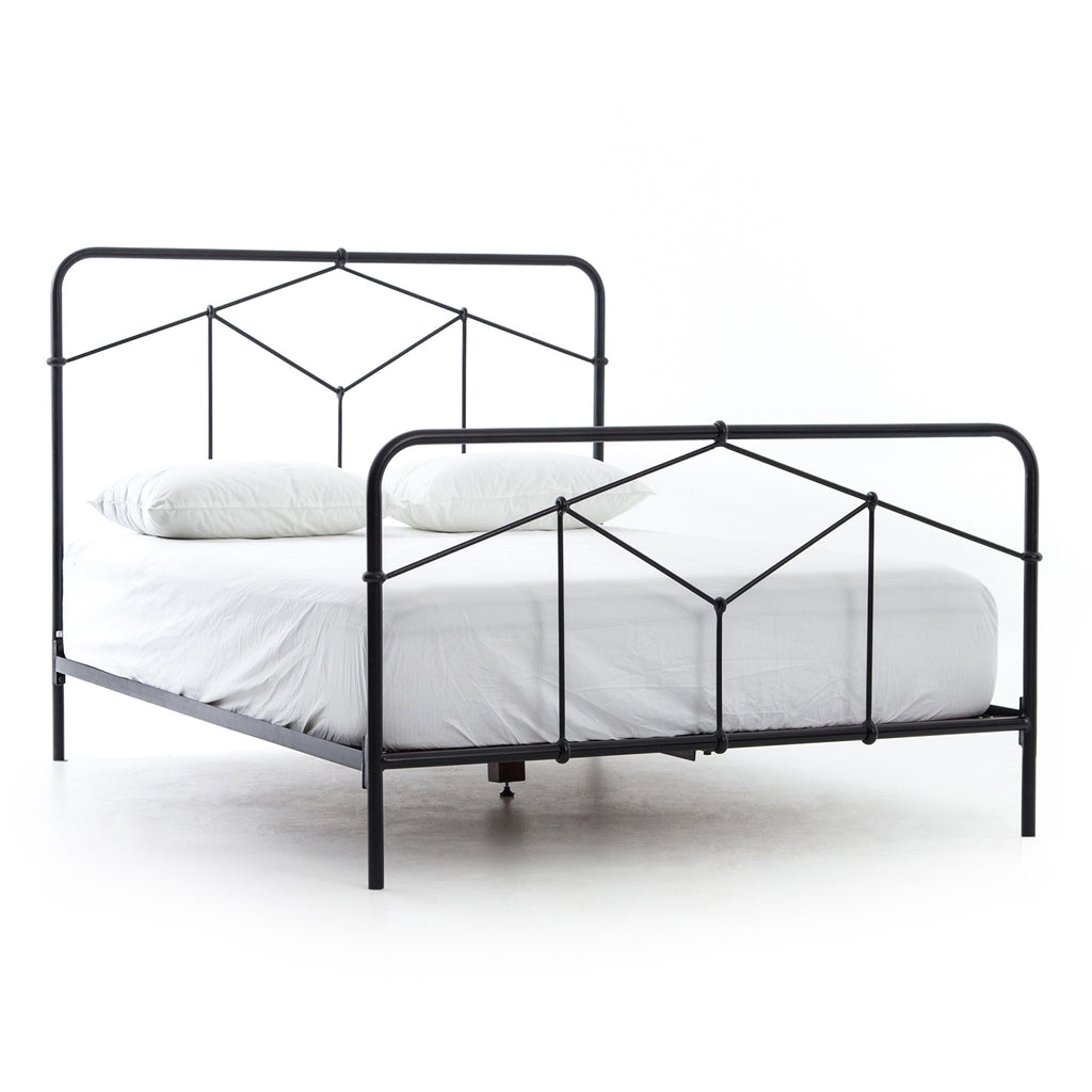 Resolutely modern, Four Hands furniture collection mixes materials and influences for a fresh, inspired look. Modern geometric patterns update a design inspired by vintage European hospital beds. Simple iron tubing looks airy and feels substantial. Twin size stunning when paired. Low-profile box spring recommended.