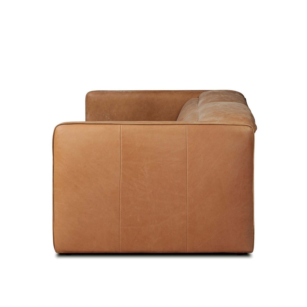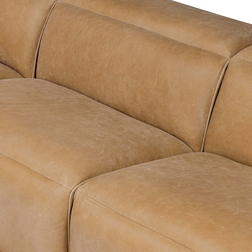 Recline and relax on this modern take on classic design. Chesterfield-style tufting runs along the sides of this smart recliner sofa. Customize your comfort level with the push of hidden buttons with pieces in our Power Motion collection. Sectional features straight arms with a medium to supportive sit and seat height. Zero-clearance design means the sectional can be placed up against a wall. Upholstered in thick top-grain leather with pronounced grain exclusive to Four Hands. Includes 9'5" power cord. There is a six-motor maximum per power outlet. Each motor comes with a two-year warranty.