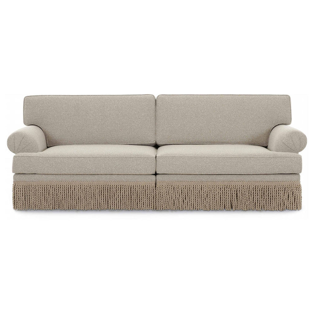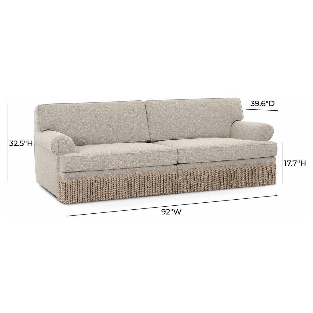 The Yvette Modular Sofa adds rich texture and a polished touch to your space with its boucle upholstery and decorative tassel fringe along the front edge. Its timeless silhouette makes it a versatile centerpiece for any living room.