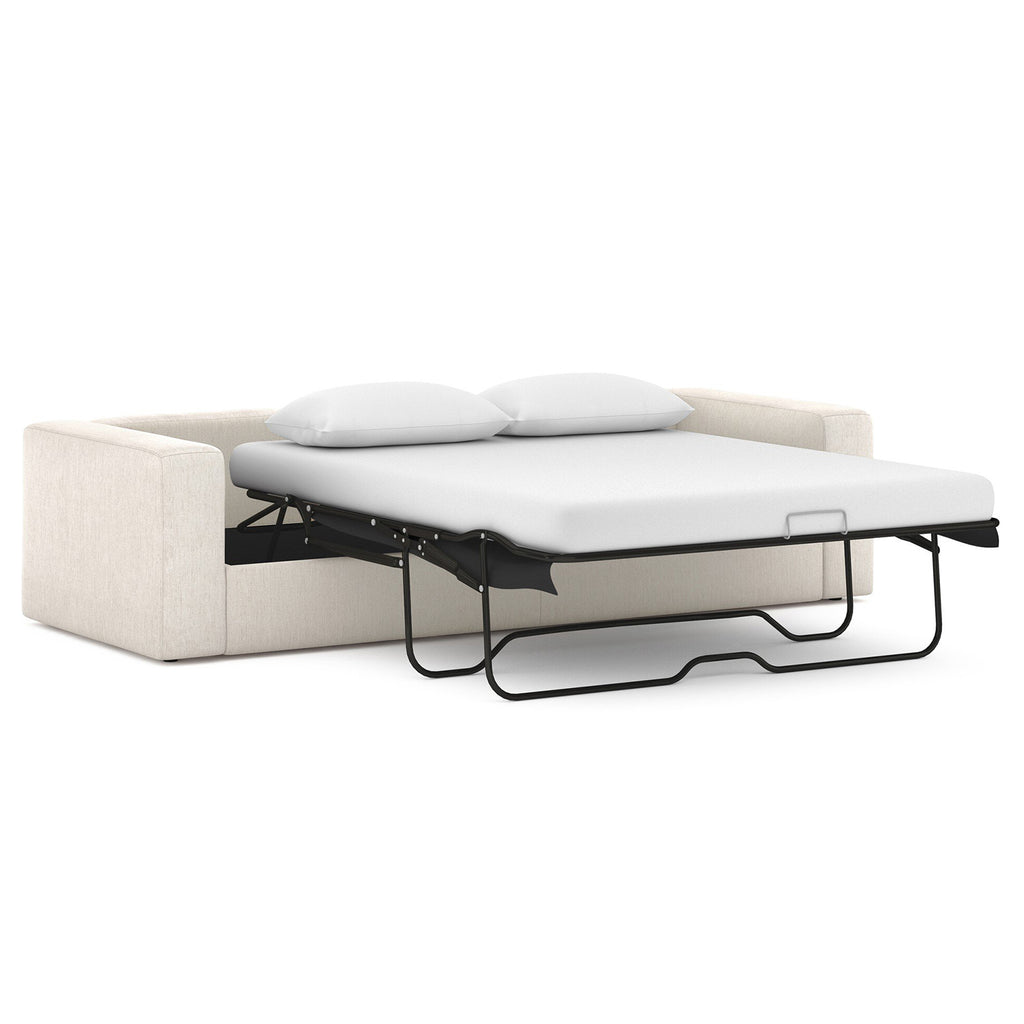 Deep, modern and seductive. A Queen-size sofa bed is covered in a light, durable woven fabric. Pull out with ease for overnight guests.