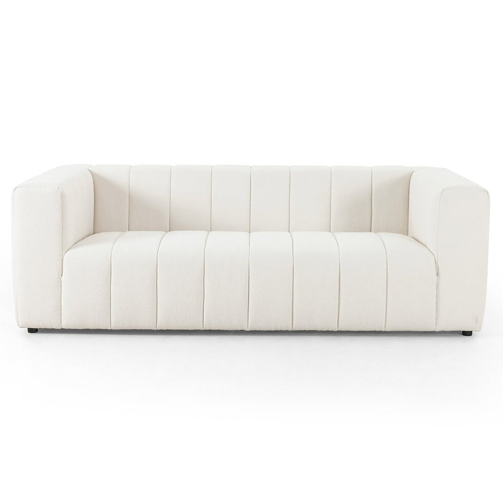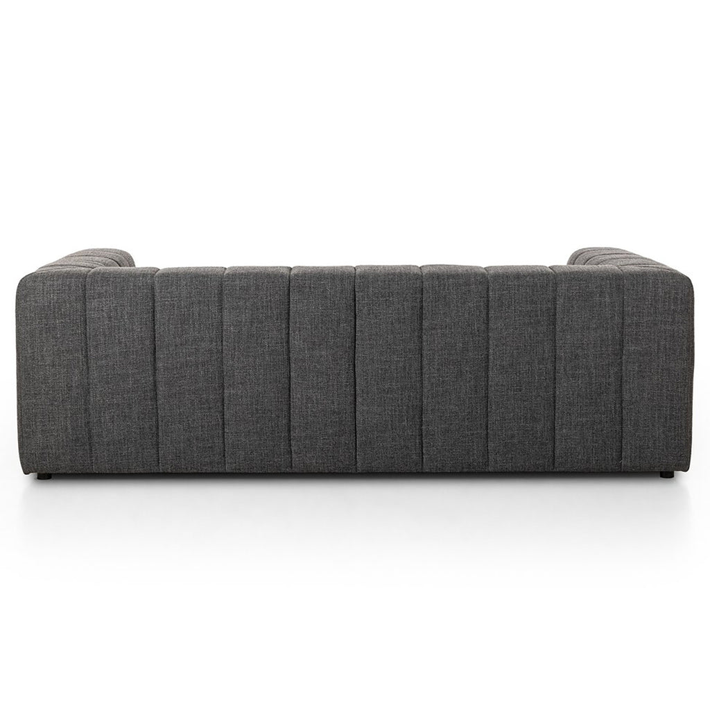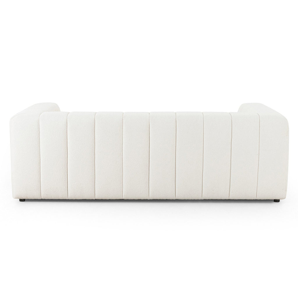 Wide, vertical channeling and low styling speak to the modish Italian influence of this softly textured sofa.