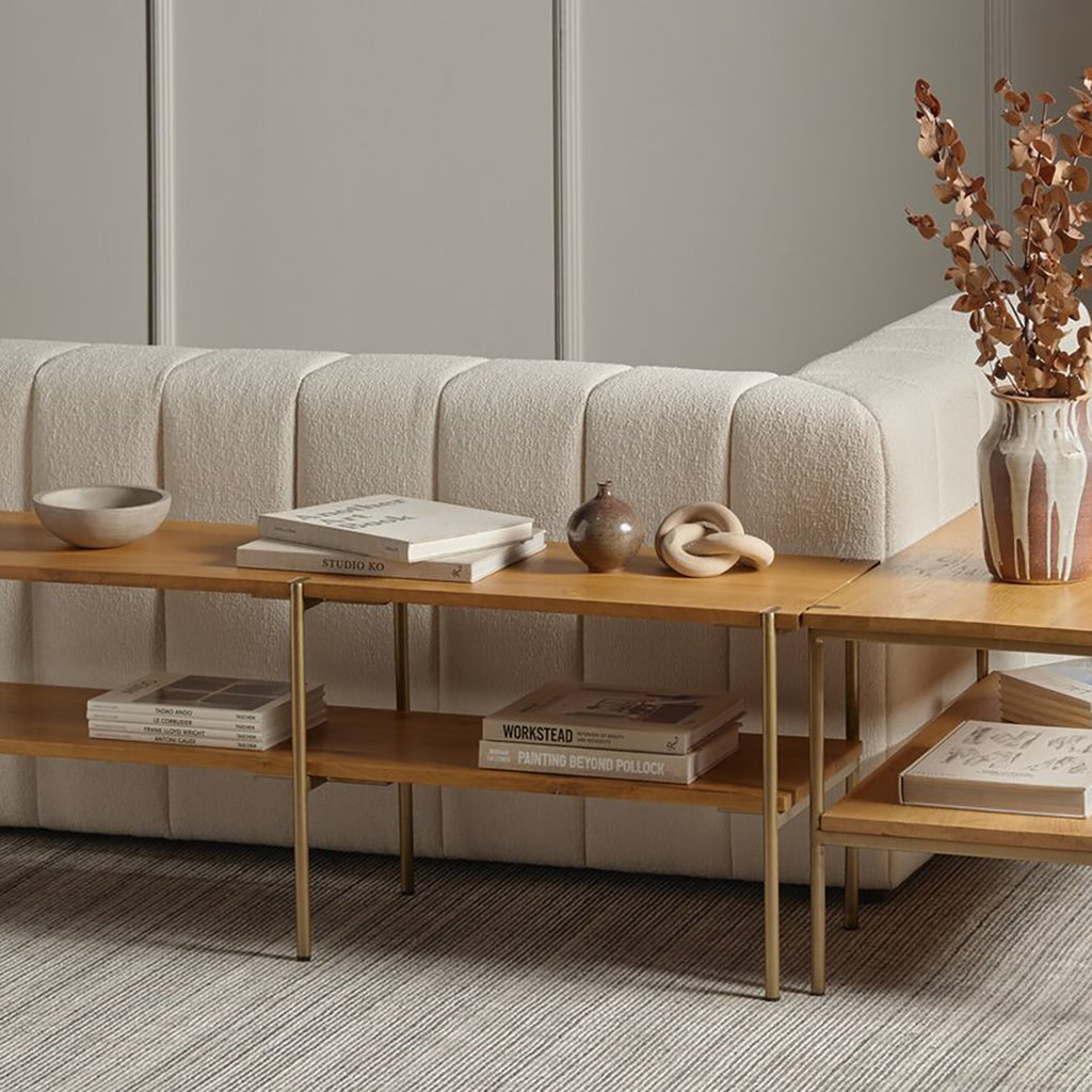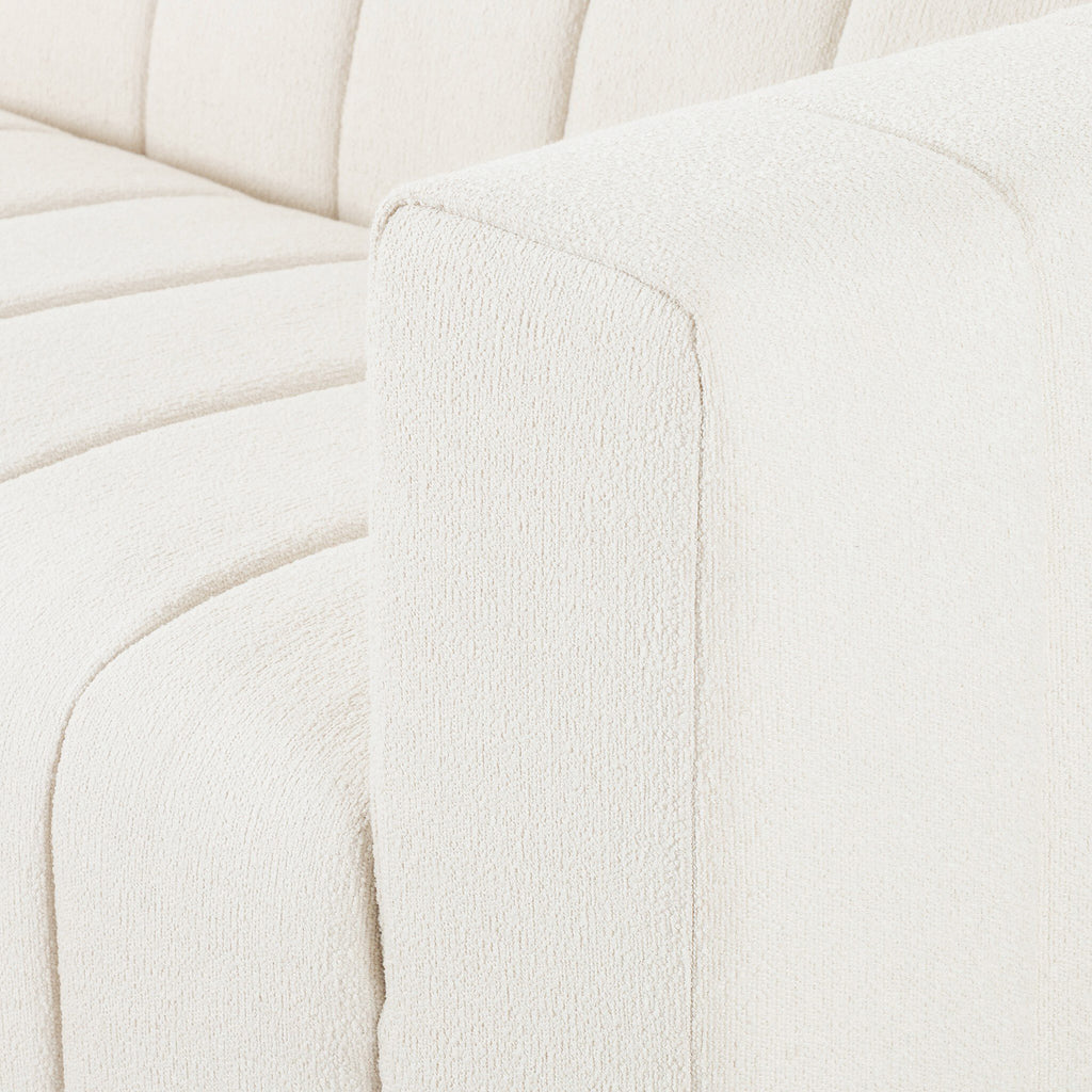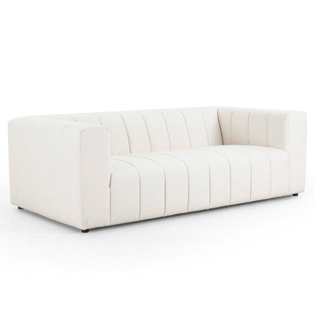 Wide, vertical channeling and low styling speak to the modish Italian influence of this softly textured sofa.