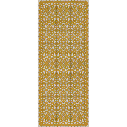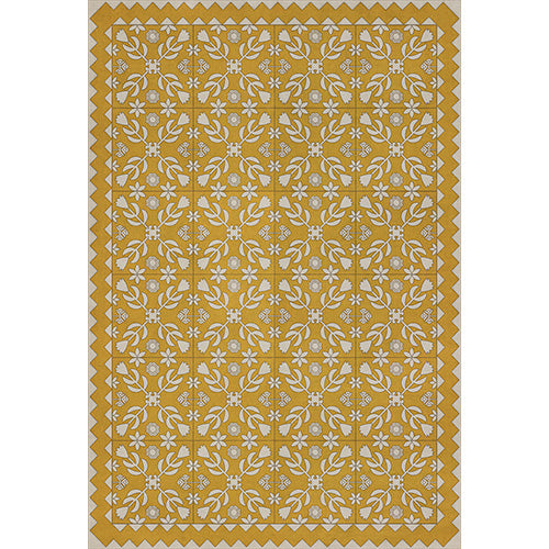 The Autumn Moonlight vinyl floor cloth from the Folk Art Museum Floral Quilt collection was inspired by vintage linoleum. Perfect for kitchens, baths, screened in porches and patios, the durable vinyl floorcloths are easy to clean and always lay flat. Vinyl floorcloths are made with two-ply vinyl with latex padded backing, designed to be fade-resistant in direct sunlight and durable against the elements but work best in controlled outdoor environments.