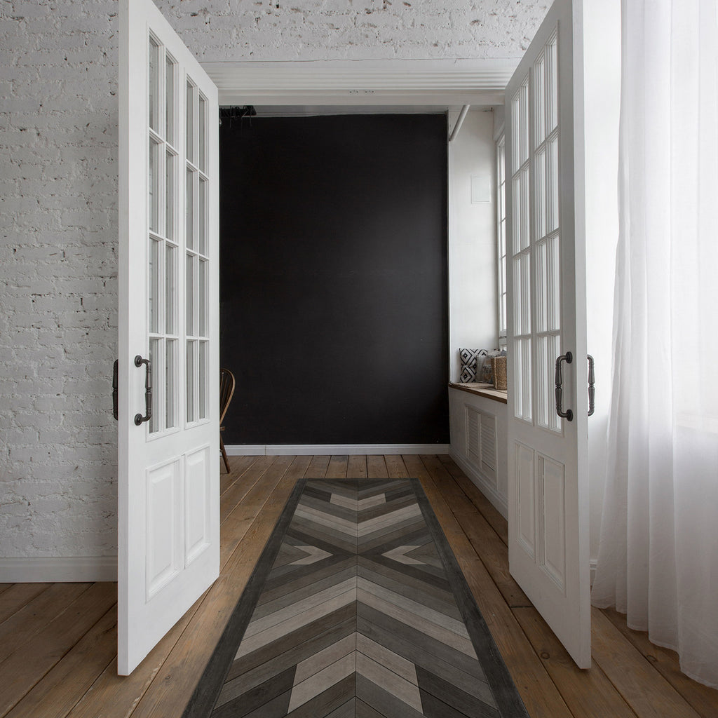 The Bohemia After Dark vinyl floor cloth from the Norwegian Bohemian collection was inspired by vintage linoleum. Perfect for kitchens, baths, screened in porches and patios, the durable vinyl floorcloths are easy to clean and always lay flat. Vinyl floorcloths are made with two-ply vinyl with latex padded backing, designed to be fade-resistant in direct sunlight and durable against the elements but work best in controlled outdoor environments.