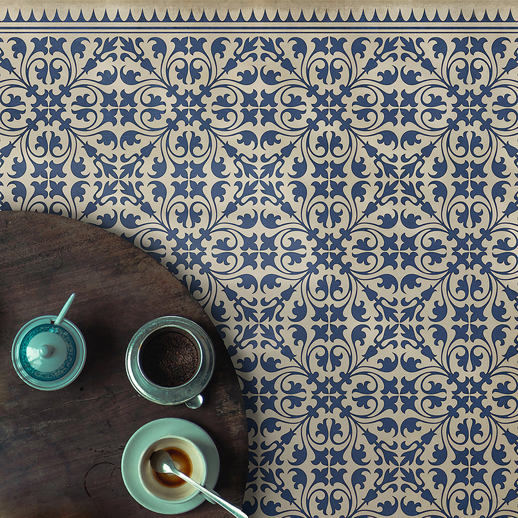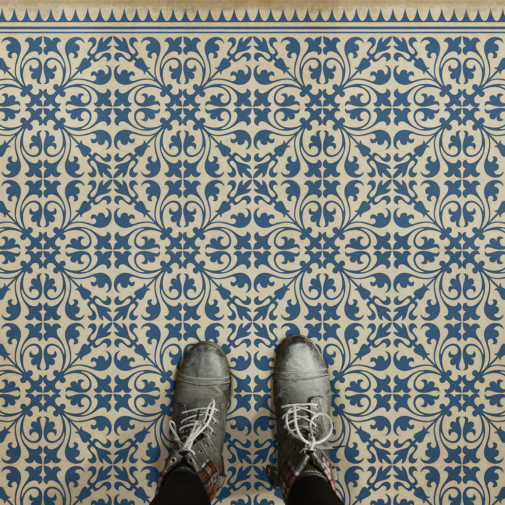 The Mad Hatter Tea Party vinyl floor cloth from the Pattern 21 collection was inspired by vintage linoleum. Perfect for kitchens, baths, screened in porches and patios, the durable vinyl floorcloths are easy to clean and always lay flat. Vinyl floorcloths are made with two-ply vinyl with latex padded backing, designed to be fade-resistant in direct sunlight and durable against the elements but work best in controlled outdoor environments.