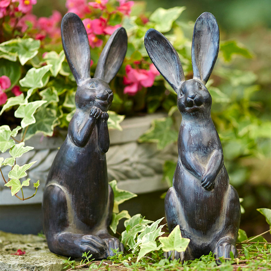 Add a touch of nature to your home with this beautiful set of Standing Rabbit Figurines. Featuring two assorted designs, this set is the perfect addition to your spring home decor. The weathered brown and black finish paired with the quality polyresin composition and whimsical designs is the perfect combination to create a beautiful spring display. Arrange the pieces around your home or garden to accent other spring decor, or display them together in a centerpiece or yard display to make a statement.