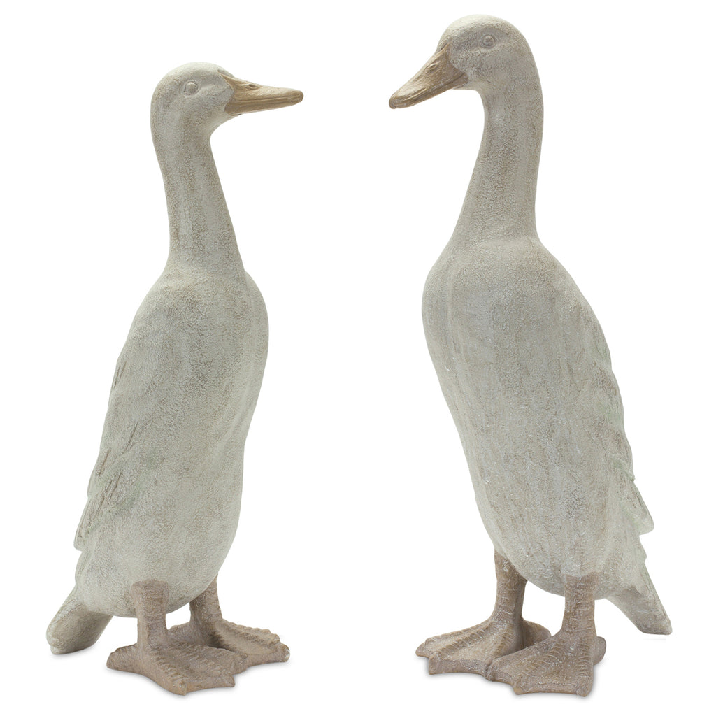 Distressed Stone Standing Duck Garden Statue Set of 2