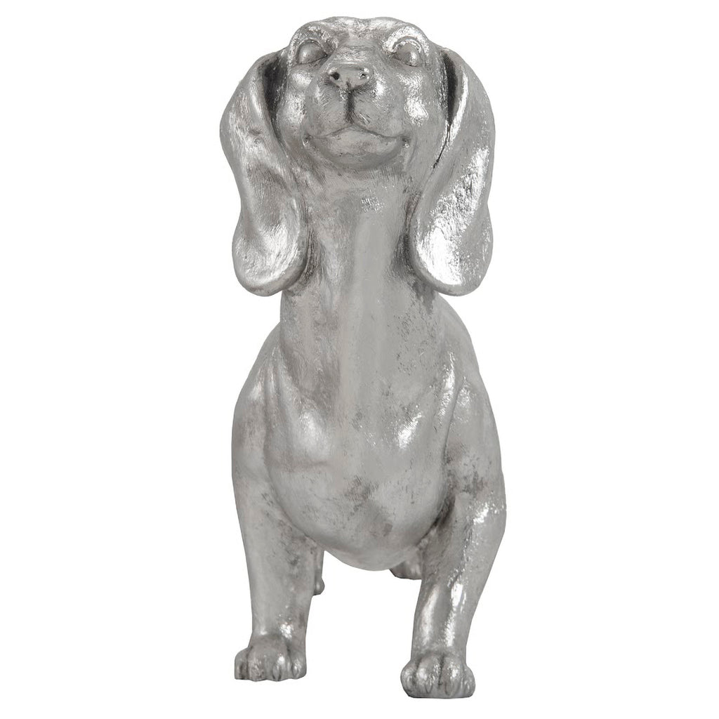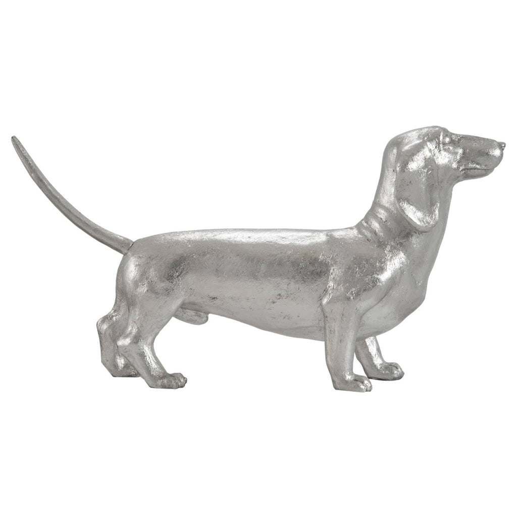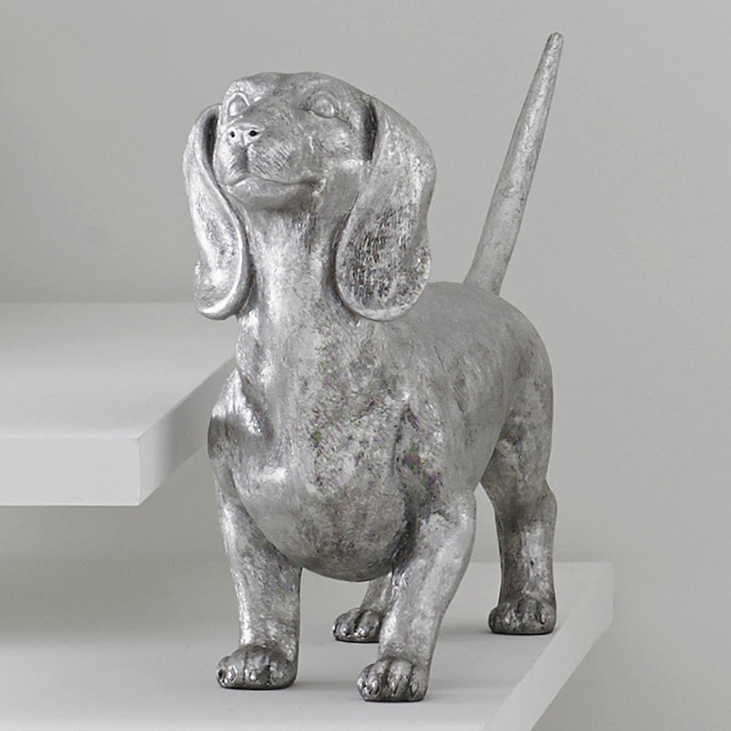 Cast in artisan-grade resin and hand finished in silver leaf, this realistic canine make a glamorous pet.