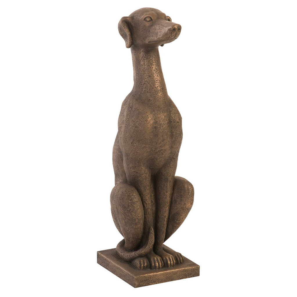 The Greyhound Statue is cast from an artisan-grade resin mold and finished in actual bronze powder. It sits regally on a matching square base and measures over three feet tall. A perfect statue for any interior or exterior.