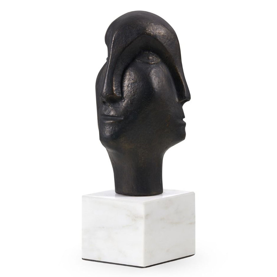 The V&H Gemma playfully references Cubism by juxtaposing different perspectives in an unanticipated manner. The piece cleverly blends a modern aesthetic with an older artisanal quality which is evinced by the hand-molding of the piece. Crafted by master artisans in metal with a bronze finish, the Gemma rests on a base of polished marble.