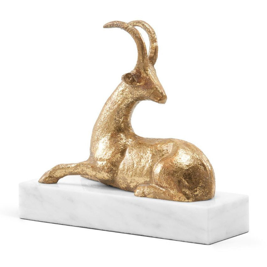 The V&H Saiga Statue showcases the talent of our artisans. Hand-cast, hand-leafed metal is expertly molded to create a gentle curve which emanates from the horns and encircles the very tips of the hooves.