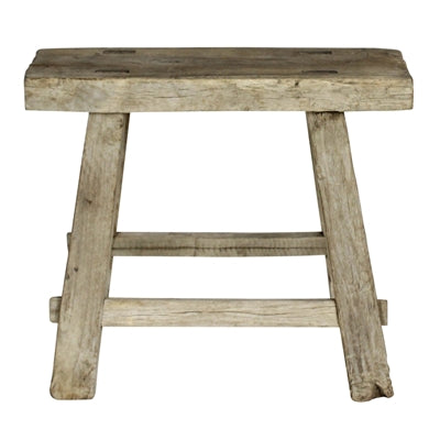 Crafted in the mid-1800's of elm wood, a wood that is strong and long lasting and made without using nails or screws these pieces were created for pure function; small stools to sit on while working, narrow benches to perch on while eating and are now given the chance at a more glamourous job. Stools to hold towels next to a bathtub and benches the perfect proportion to fit at the foot of a bed. Sizes are approximate and will vary. Each item is unique in style and design and the wood will show signs of age and use from its history.