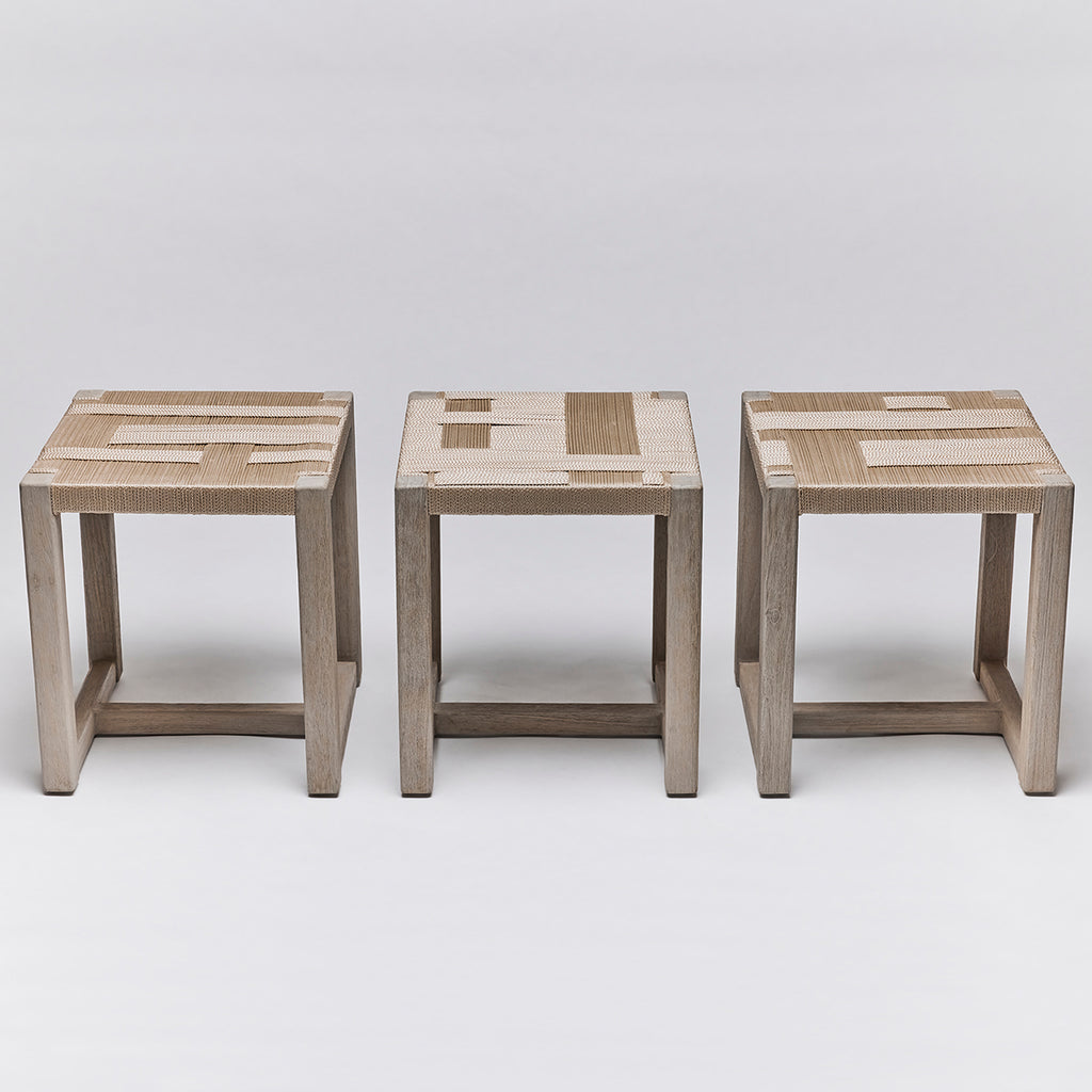 Crafted of woven champagne rope topping rustic grey teak frames, the Venice Square Stools are a super-chill trio that look as cool together as they do apart. This item is made of solid wood. Item will not be exactly as pictured, subtle deviations in hue after finishing can be expected as a result of natural variations in coloration of the base material.