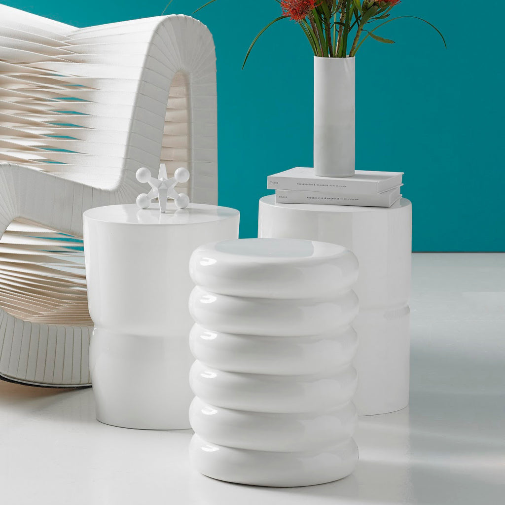 Gleaming and contemporary in its lines, the Carved Stool is so versatile, most interiors styles will welcome it with aplomb. Made of composite the lightweight nature of the material from which it is made means it is very easy to move around without sacrificing strength. Place it almost anywhere for a last-minute addition to a seating grouping, or pull it up to a sofa or club chair and it becomes a drinks table.