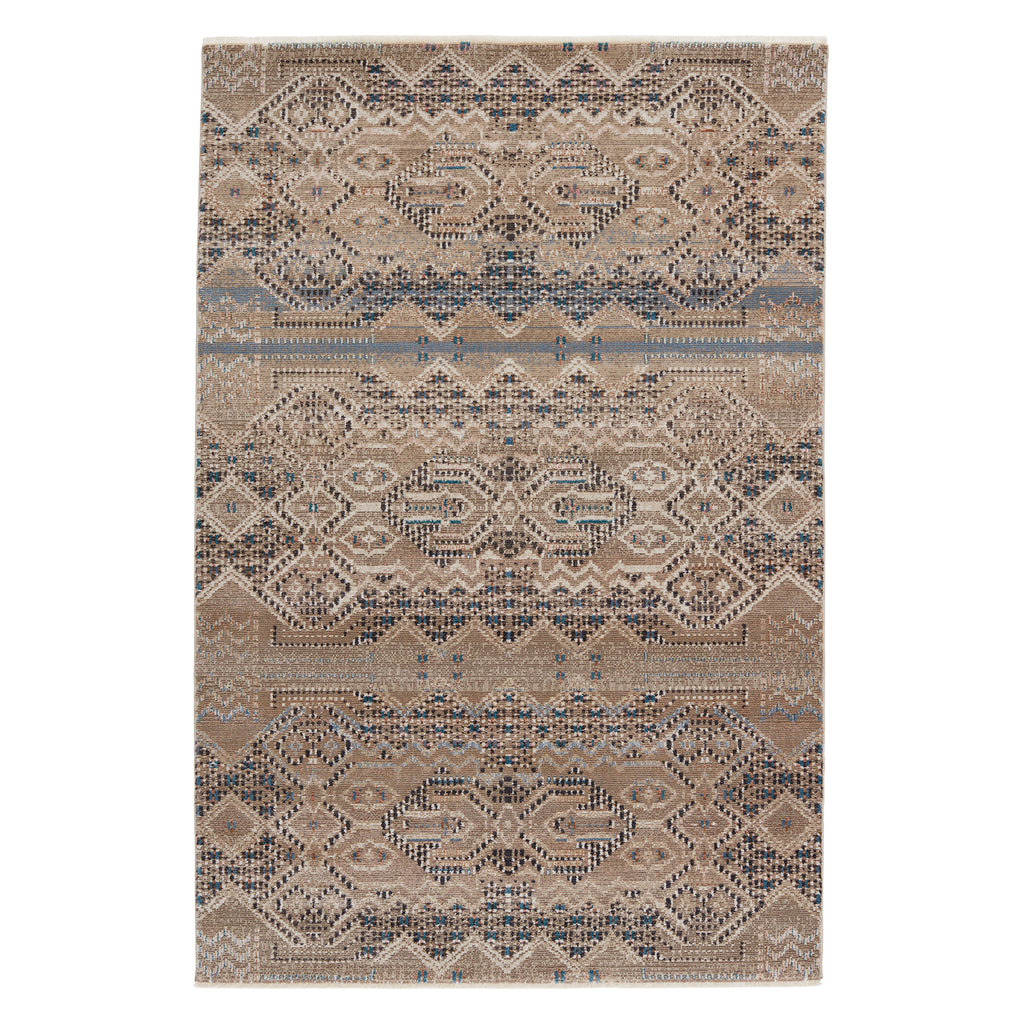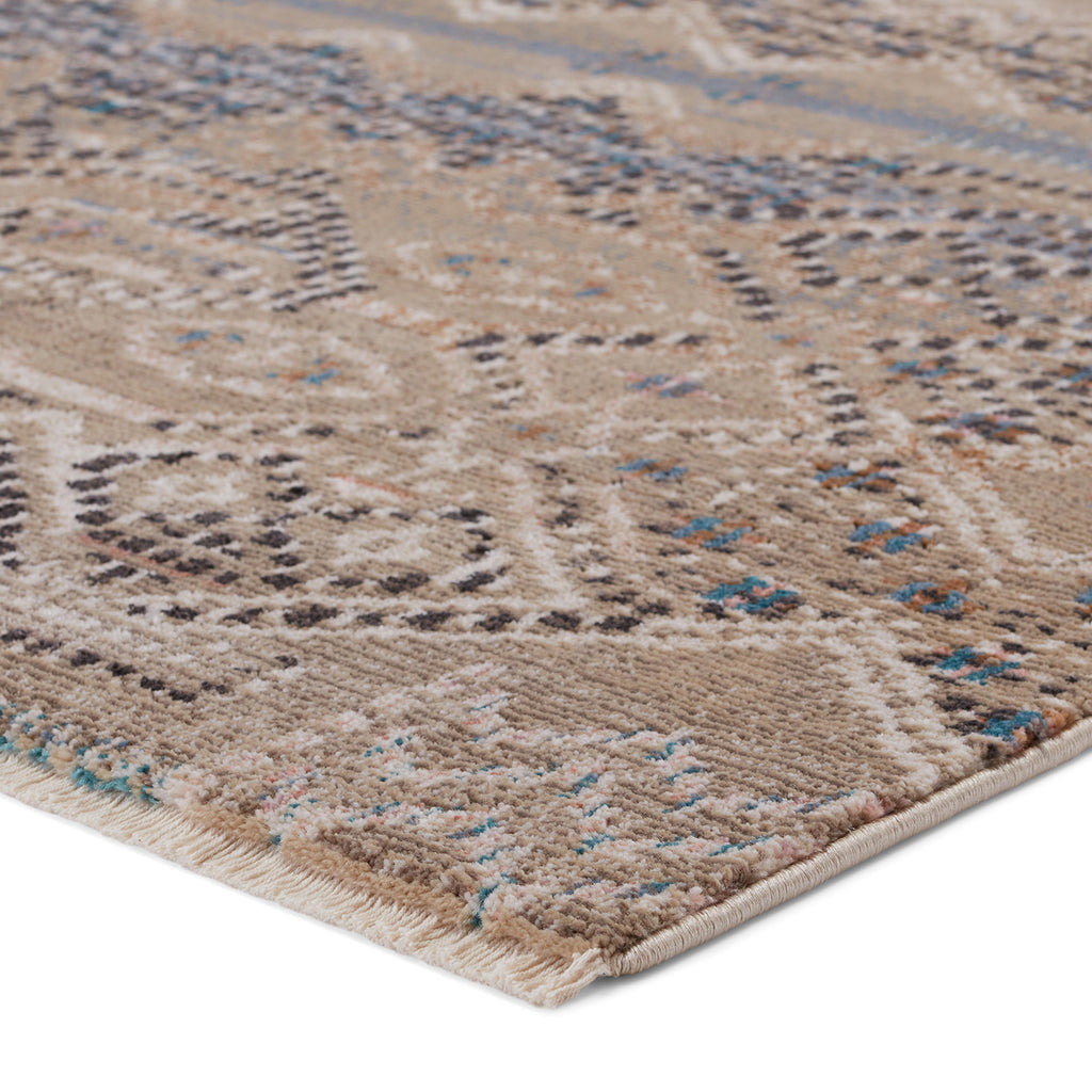 Inspired by the African motifs, the Sanaa collection by Nikki Chu is the perfect combination of statement-making patterns and easy-to-decorate-with hues. The Tamari rug boasts a detail-rich tribal design in tones of tan, brown, taupe, and hints of pink and blue. Ivory fringe trim adds texture and vintage allure. This power-loomed rug features a plush and durable blend of polyester and polypropylene, lending the ideal accent to high-traffic spaces.
