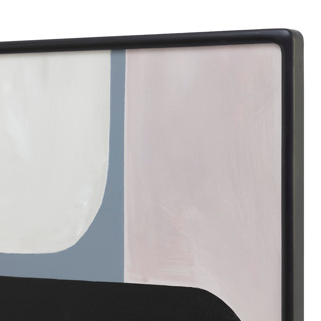 This retro-inspired triptych features an eye-catching rectangular geometric pattern. Each piece can be arranged in different ways to create a unique style that can fit any living space. Features a black solid wood floater frame with rounded corners.