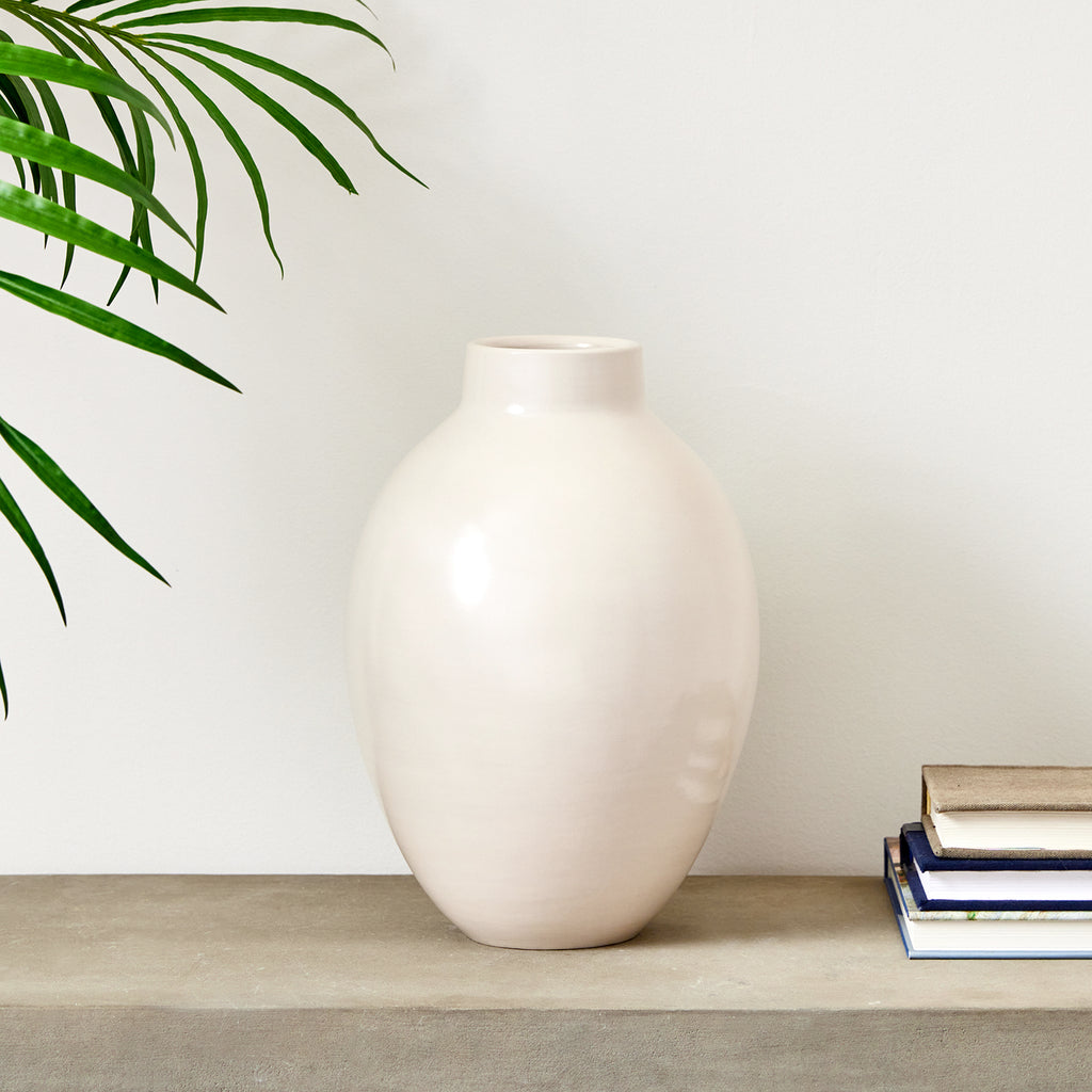 Made in Chulucanas, Peru this handcrafted ceramic vase is the product of warm climate, ancient Incan techniques, and an artisan’s touch. A wire pad buffing technique is used to create the subtle texture. Then, unlike traditional glaze firing, an ecru pigment is applied.