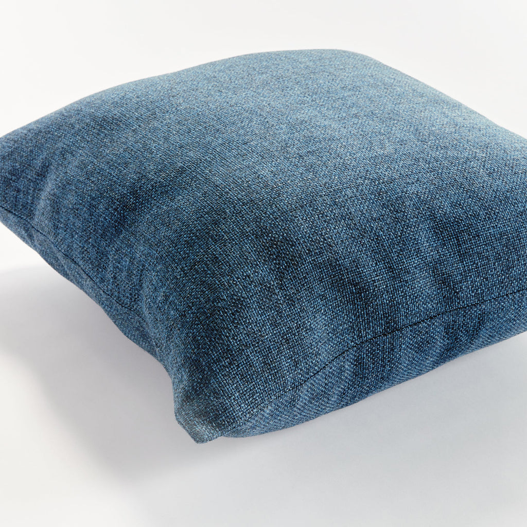 The indoor pillow that lives beautifully outdoors. Enjoy the upscale luxury and durability of Jacquard. With a woven dark blue pattern, it plays well with any palette. This pillow is weather resistant and responsibly made. Filled with 100% recycled fibers.