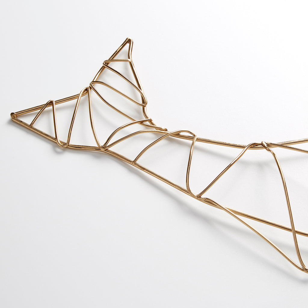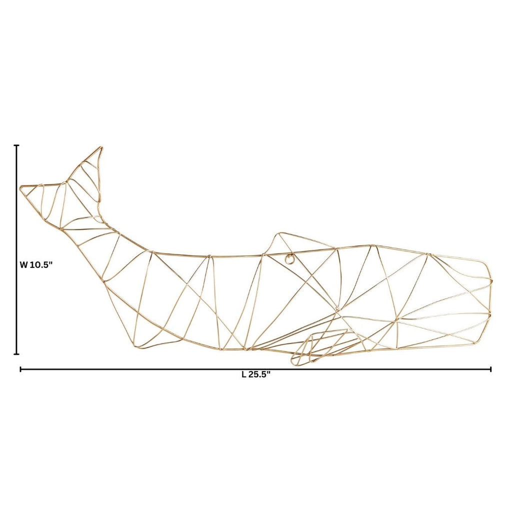 This whimsical wall art piece is part of a larger collection of marine inspired, abstract designs. Open aired and geometrically inspired, the Humpback wall decor boasts a sleek gold finish on its linear look, formed to resemble a whale. This piece is perfect for any childs room with an oceanic theme, coastal inspired ensemble, or commercial application with an aquatic twist.