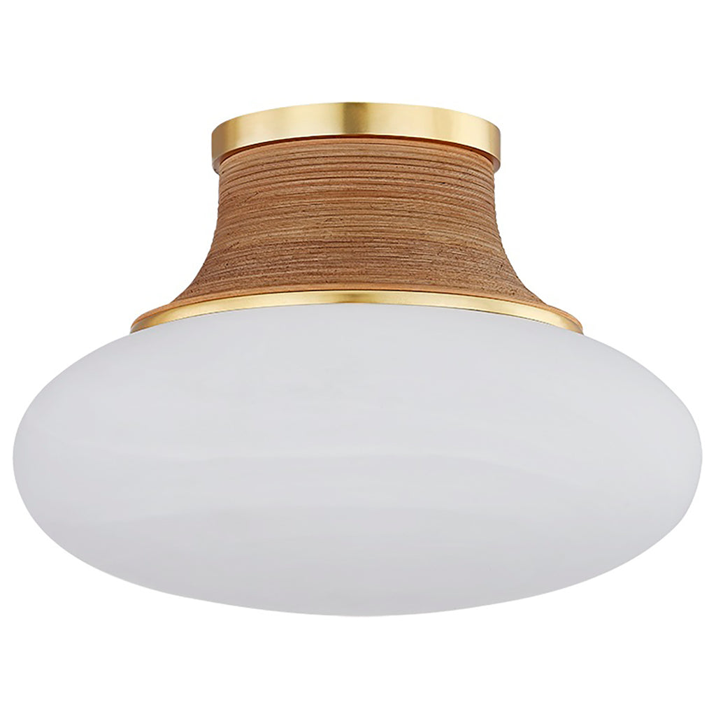 Natural textures and matte cloud glass soften the modern form of Hudson Valley Lighting Pearl River. This imaginative semi flush mount features an oblong shade accented by hand-wrapped rattan details. An Aged Brass canopy and fitter add a luxe touch to round out this coastal-inspired fixture, which is available in two sizes