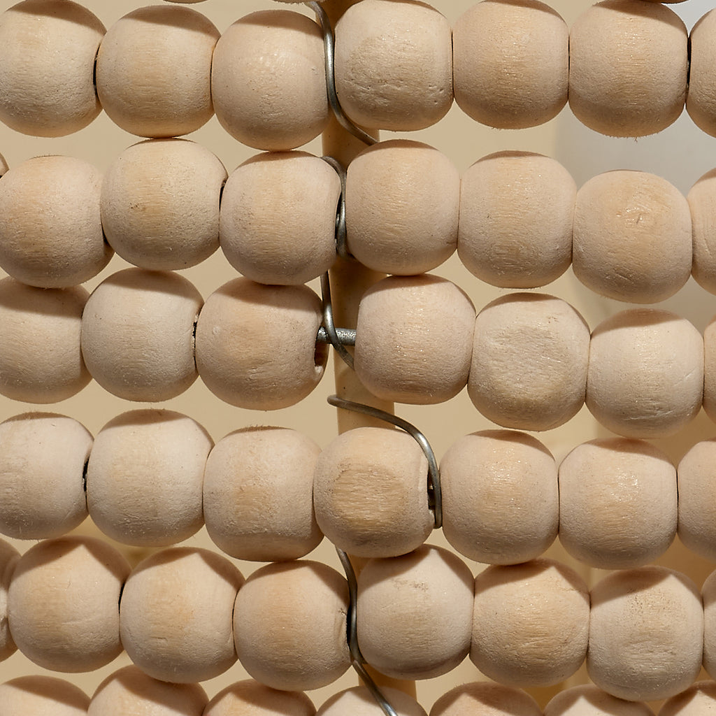 Inspired by both driftwood and beads of beach glass, Jamie’s design brings elements of each to this lovely wall sconce. Handcrafted of hundreds of small, smooth mango-wood beads that completely obscure the strong iron frame within, this sconce is cool, casual, and coastal.