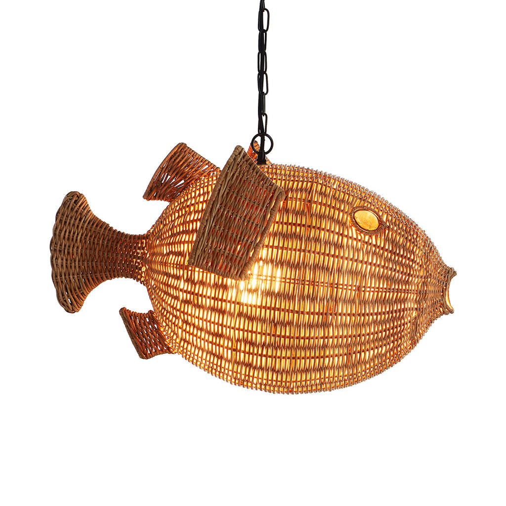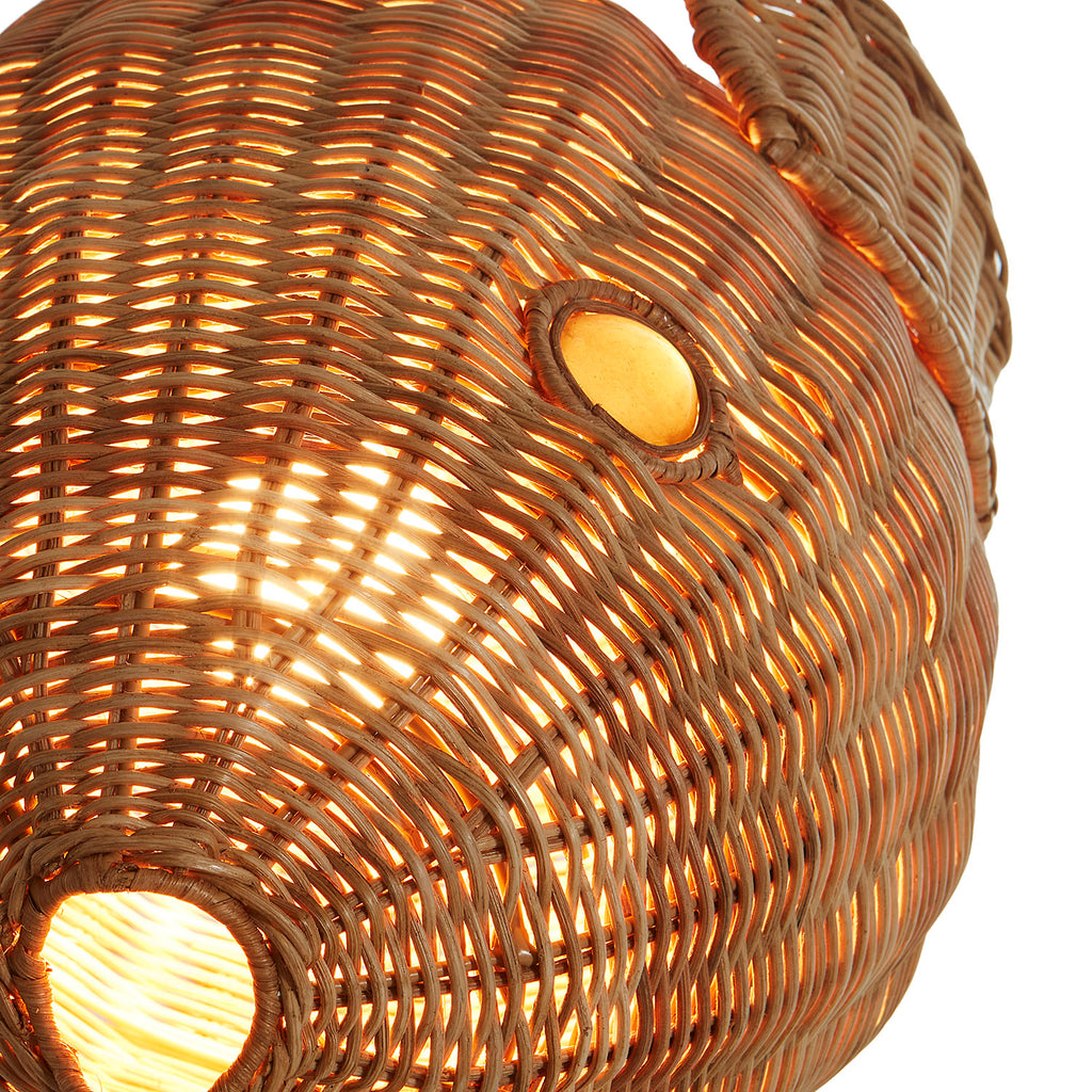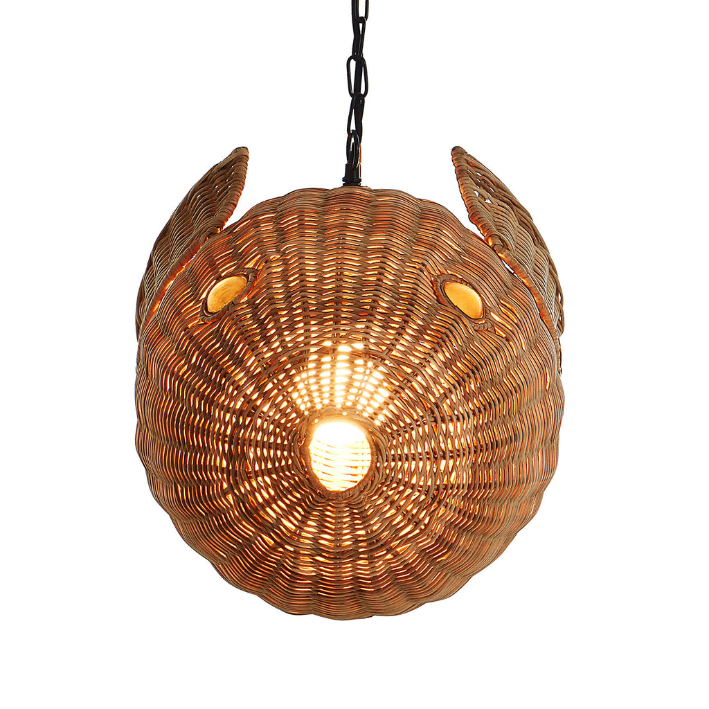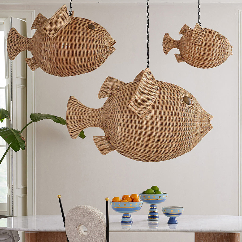 Each of our surreally sized Wicker Blowfish Pendants is weaved by a single artisan over the course of multiple days. After the reeds are hand-soaked and woven, an additional two days is spent trimming and sanding the sculpture by hand. Each piece is then coated with a clear lacquer to enhance the natural rattan coloring. Breezy and tropical in an entry or floating about your cocktail table, drop a single small pendant for seaside vibes in a powder room, or line a chic school above your counter or long dining table. We also love them at staggered heights in a palatial pad.