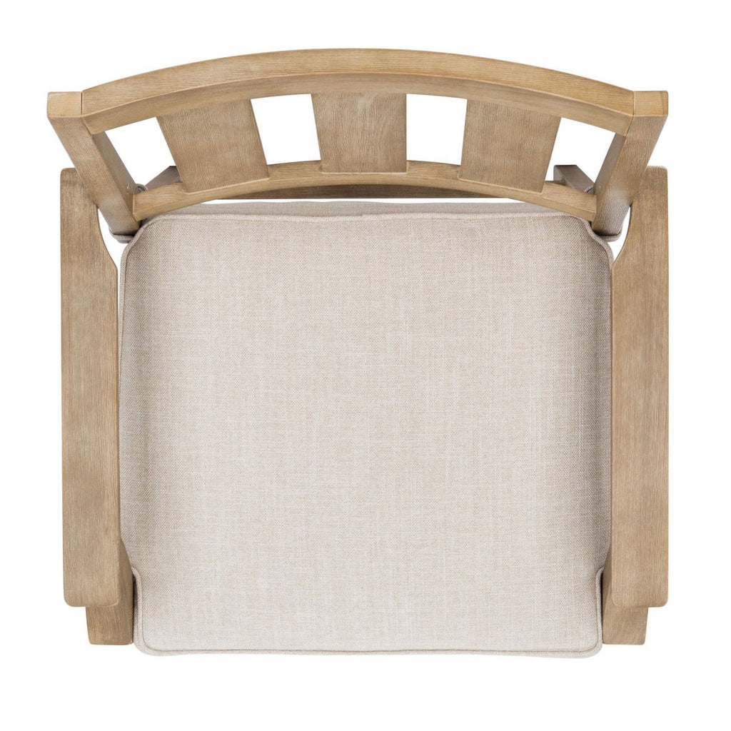An artful exhibit of mixed-medium decor, this outdoor club chair blends modern metal details with coastal-cool Brazilian teak wood construction. This urbane patio chair is roomy-wide with an open-air feel from its exposed metal sides. Plush cream cushions soften the look with an invitation to relax and enjoy your surroundings. Sold as set of two.