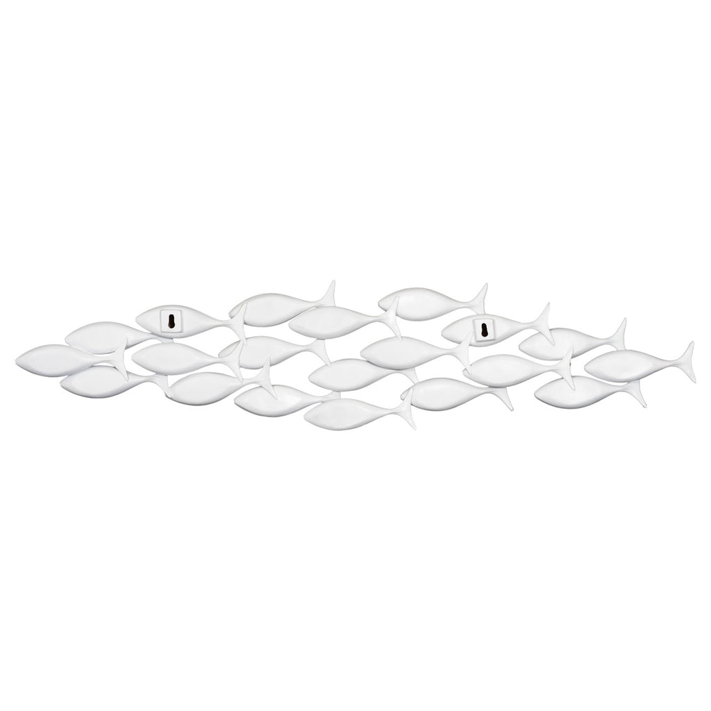 A school of fish is greater than the sum of its parts, accomplishing more together than any single fish could do alone. This demonstration of teamwork and unity inspired the White School of Fish Wall Art from Phillips Collection. Made from artisan grade resin and finished in matte white or silver, this playful piece of dimensional wall decor features twenty fish hanging from various lengths from the wall that lends an element of depth to the piece.