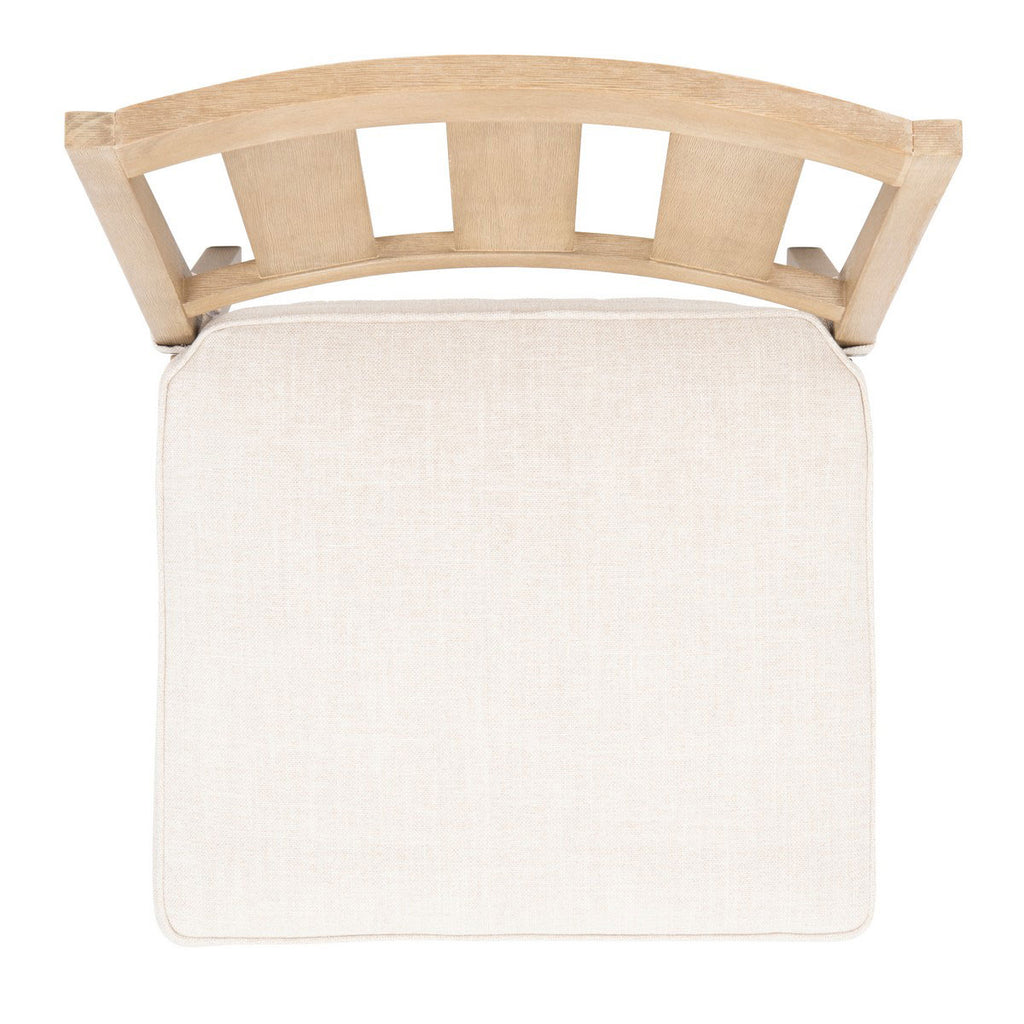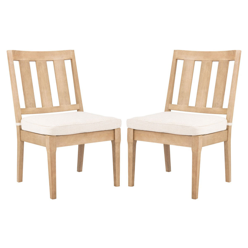 This outdoor dining chair inspires the art of conversation around the dinner table in classy, coastal style. A slatted back conveys the cool breezy feel with a plush cream cushion adding a comfort-soft perch for its natural-finished eucalyptus wood frame. Shown with the Ray outdoor dining table, available separately. Sold as set of two.