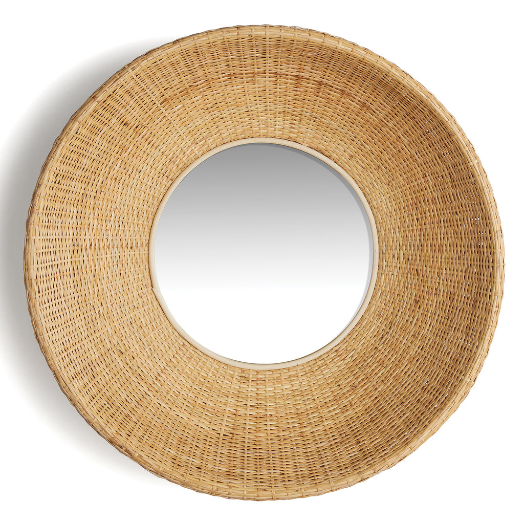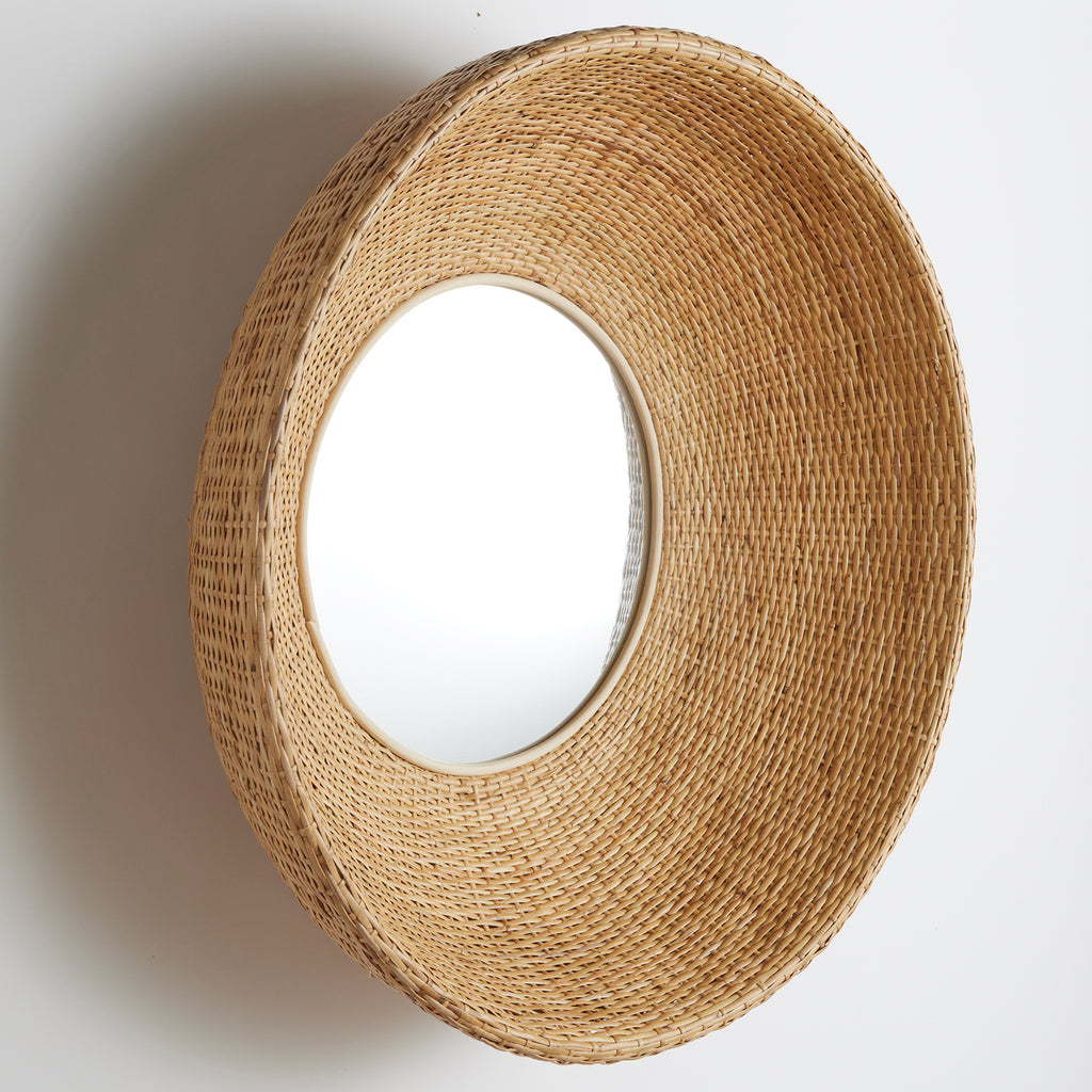 Beautifully woven in a natural rattan, this overscale wall mirror is reinforced with an iron frame. The sweeping concave profile really brings the drama. A great choice for the wide open space.