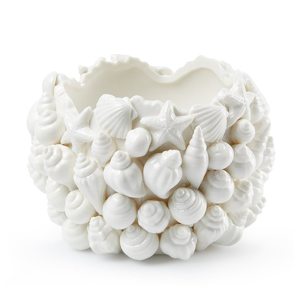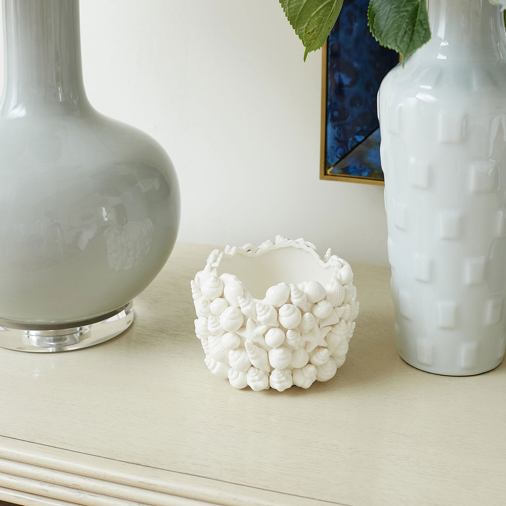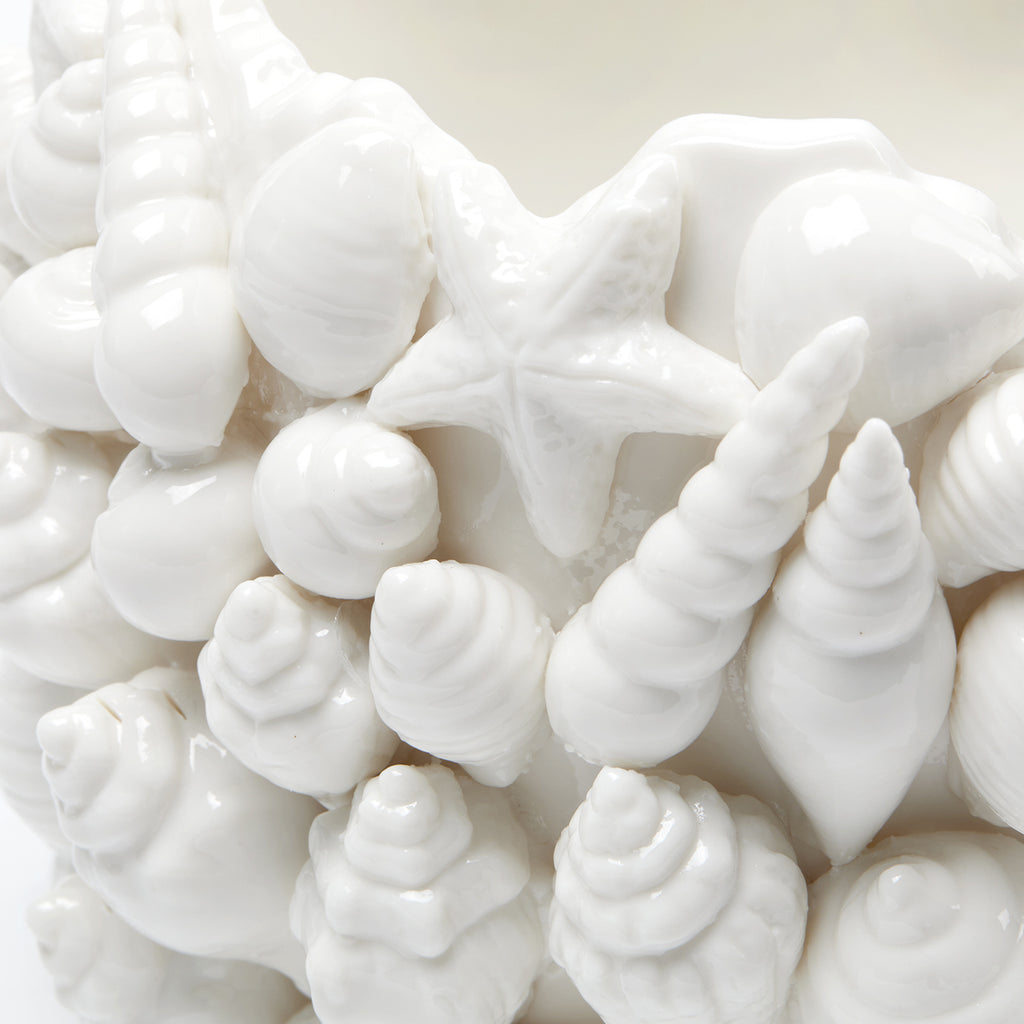 The V&H Sanibel Vase, crafted from Blanc de Chine porcelain, is adorned with countless tiny seashells, evoking the beauty of the coast. A delicate yet striking piece, it brings texture and seaside charm to any space.