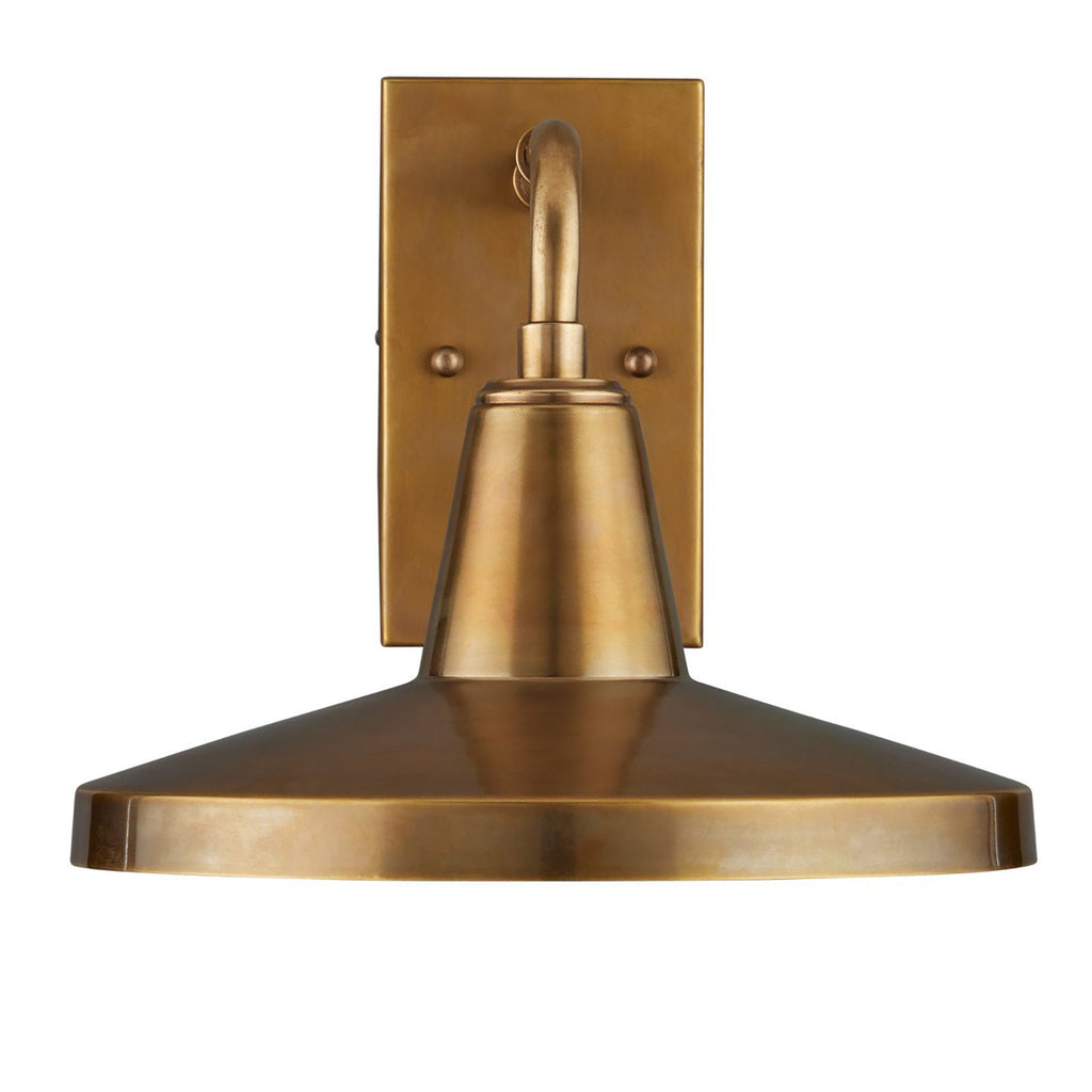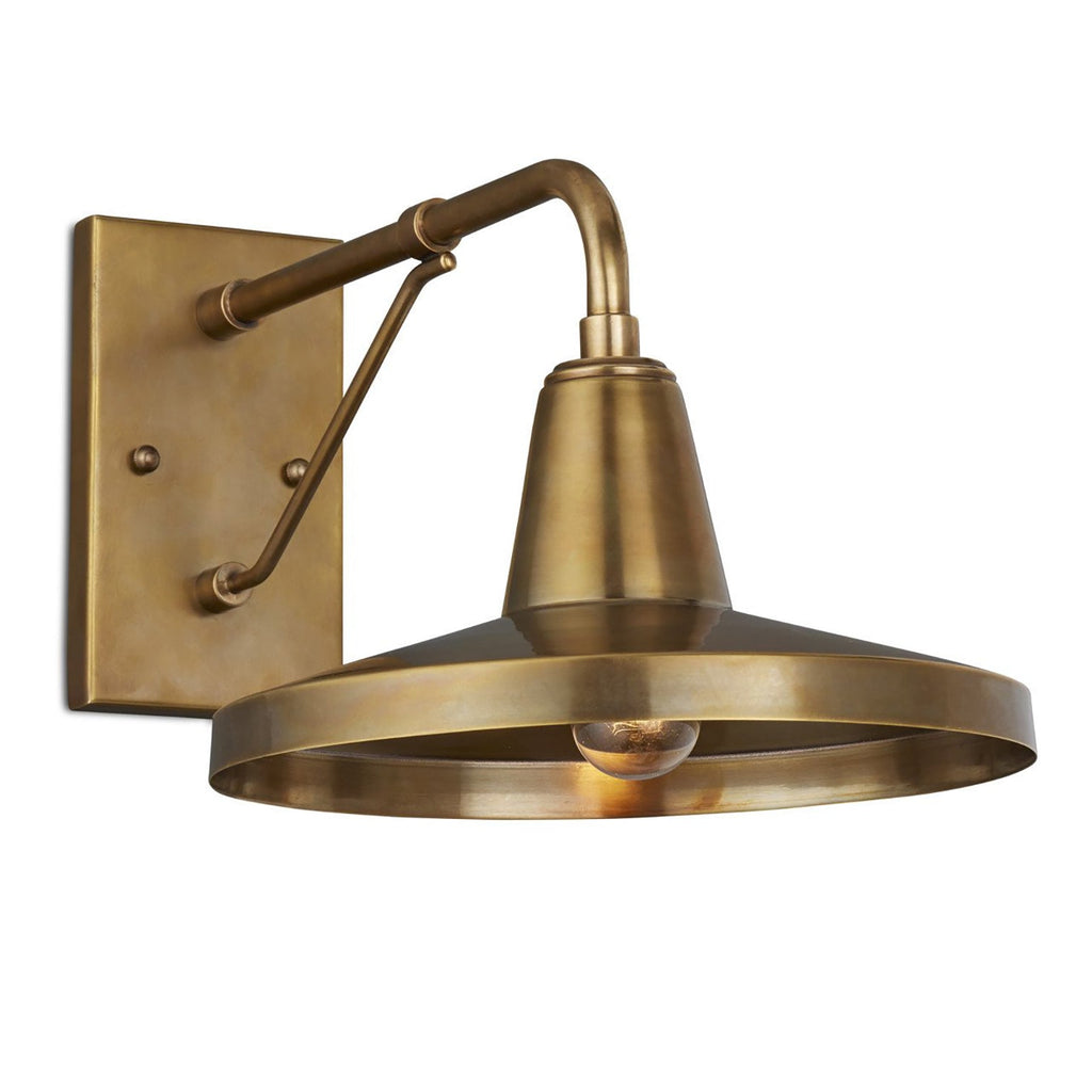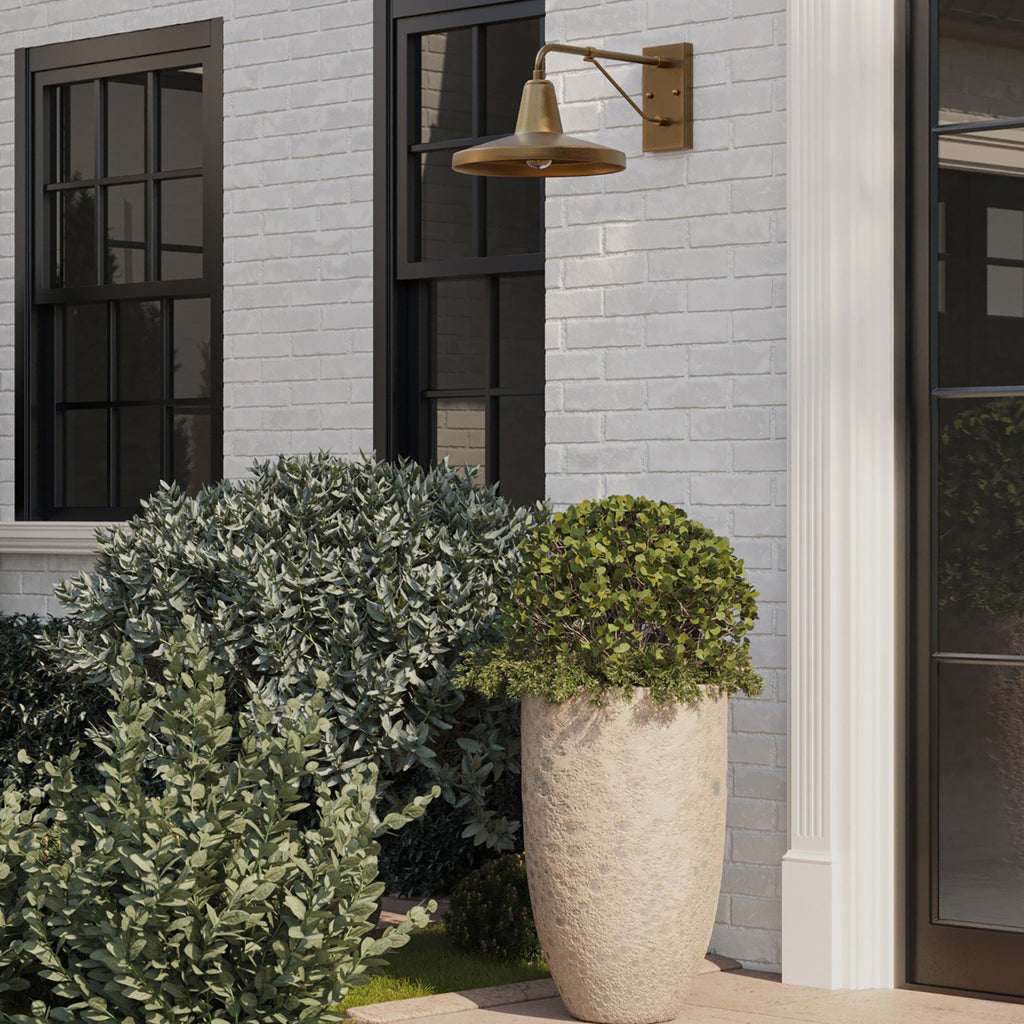 With its modern farmhouse feel, the Currey & Co Mariner Brass Outdoor Wall Sconce is made of brass in an antique brass finish. The warmth of the gold coloring with its textural patina, the shape of the geometric elements, and the simplicity of its form are the aspects that combine to make it a nostalgic design born during the early years of the Americana aesthetic.