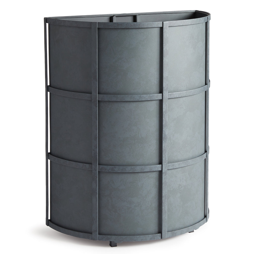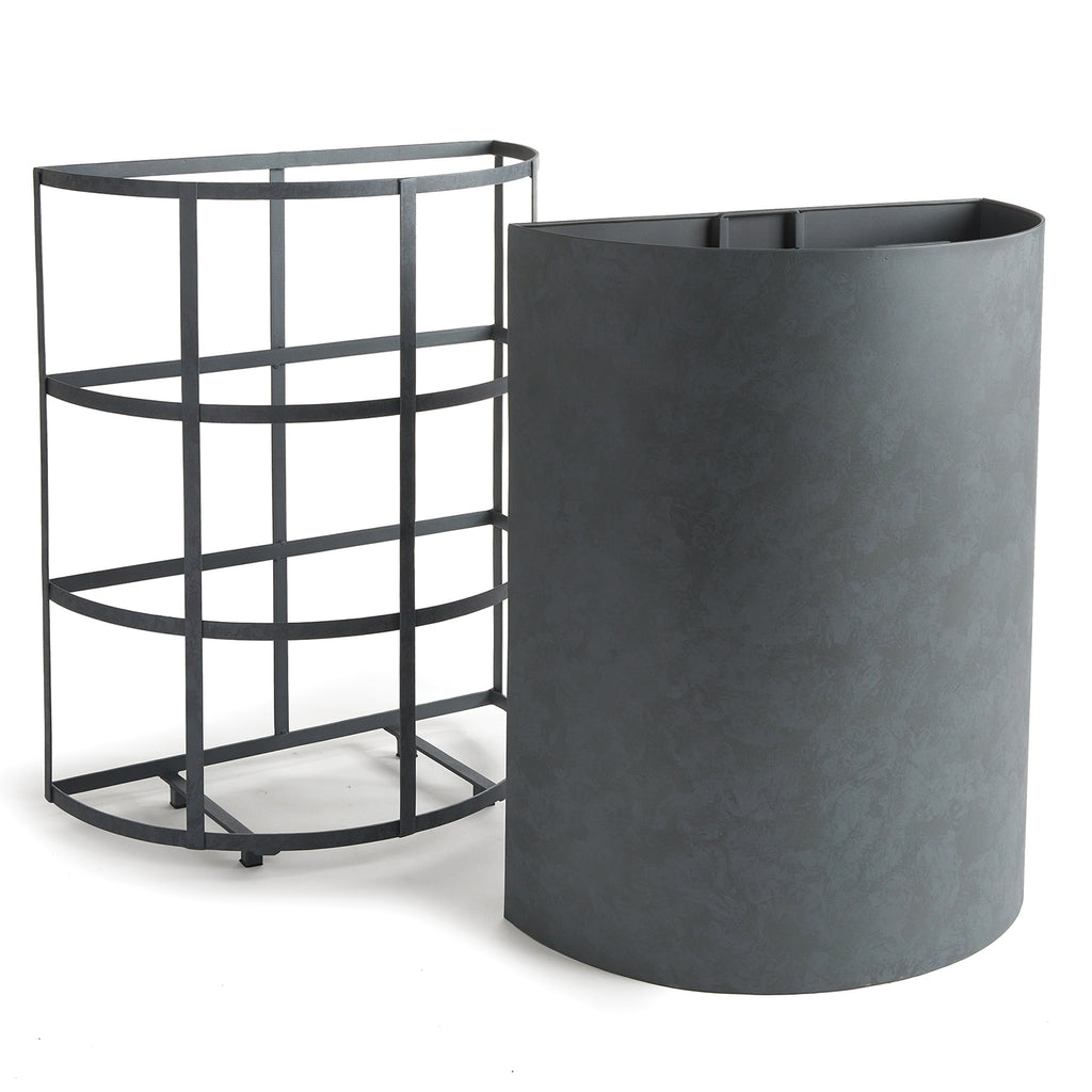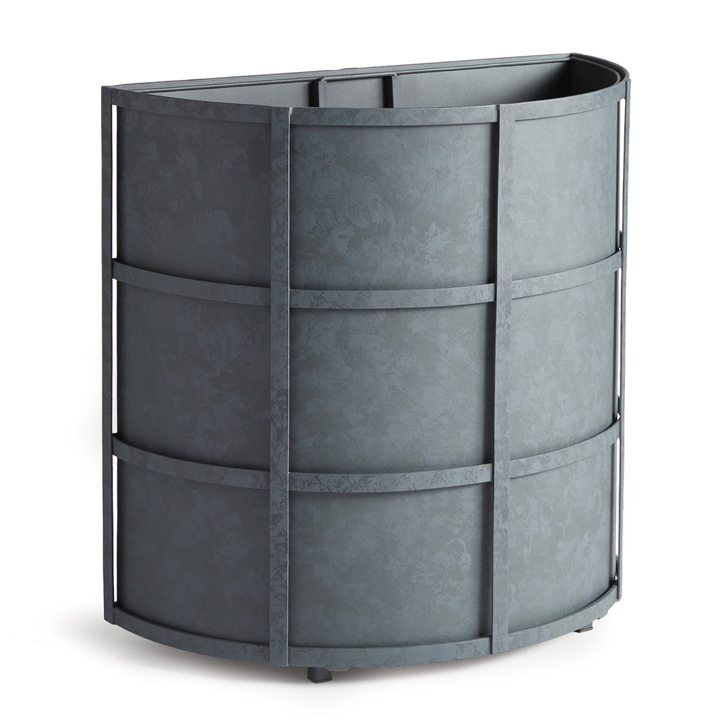 Raised off the ground for proper drainage, this well-scaled demilune planter is the modern interpretation of an antique planter. It is fully powder-coated, and has a removable liner with recessed handles. A statement piece for between windows, garage doors and on patio.