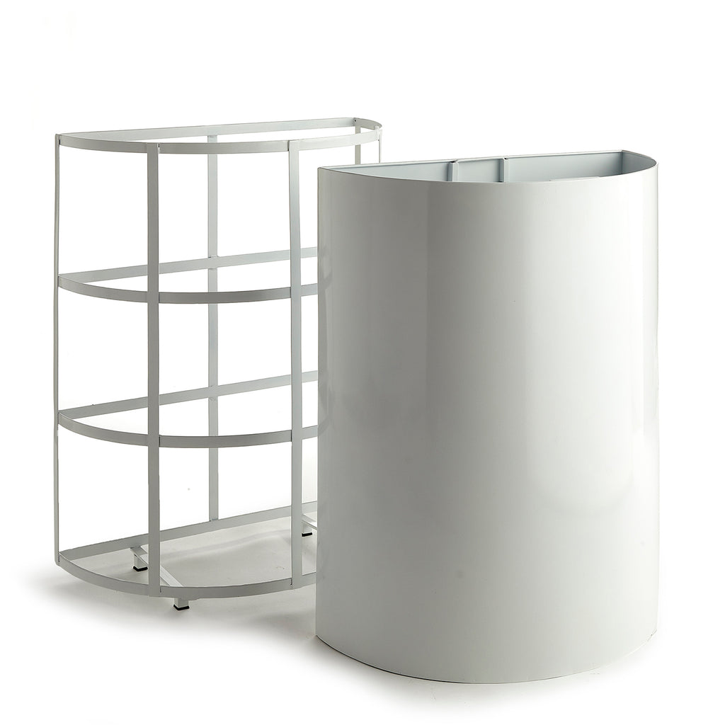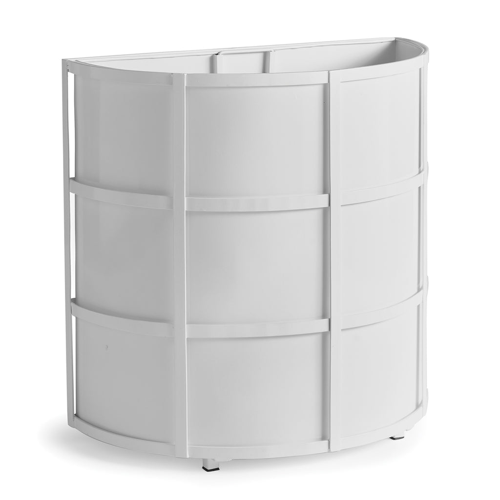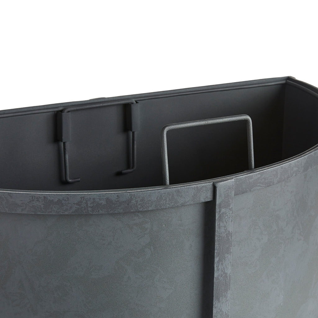 Raised off the ground for proper drainage, this well-scaled demilune planter is the modern interpretation of an antique planter. It is fully powder-coated, and has a removable liner with recessed handles. A statement piece for between windows, garage doors and on patio.