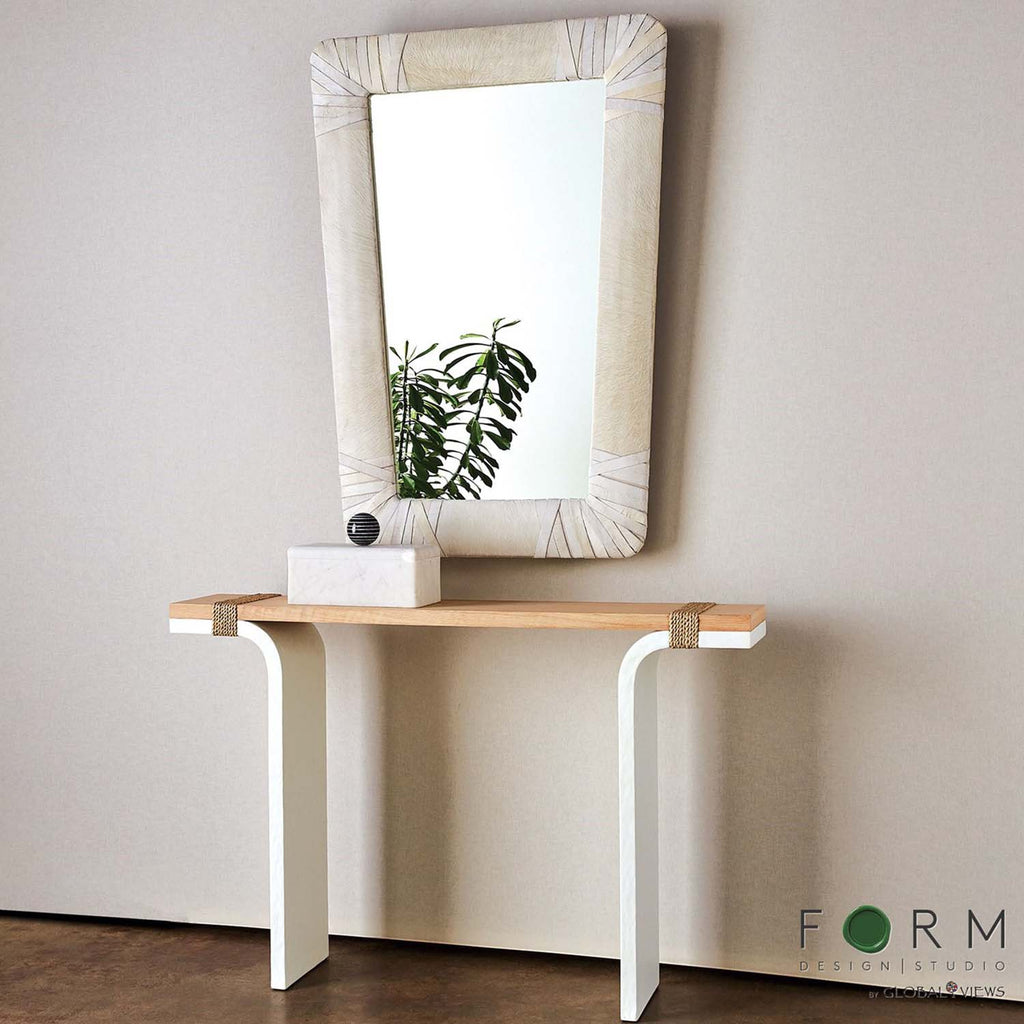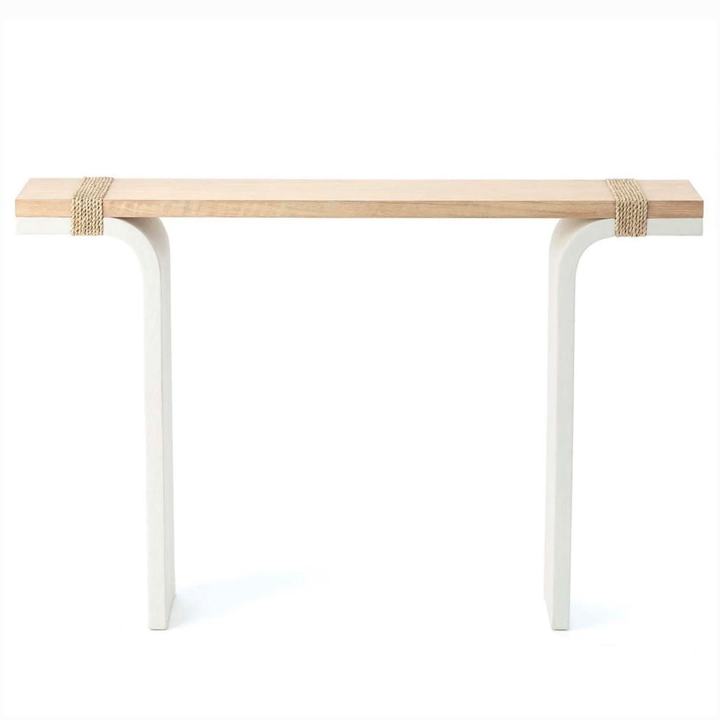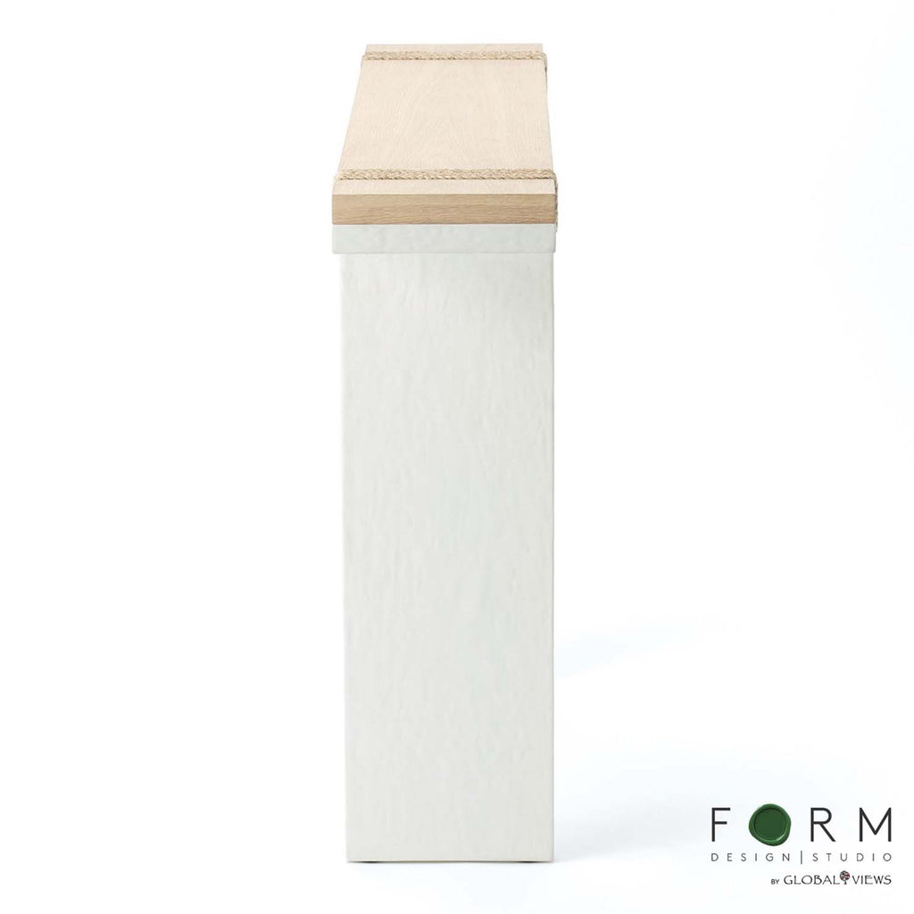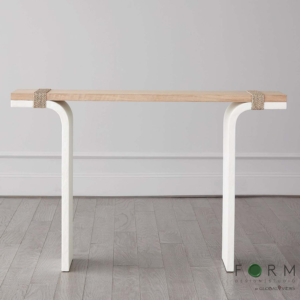 Organic abacca binds the white oak top to the gentle curves of the gesso legs of the Globla Views Debby console. An expression of easy sophistication that draws inspiration from simple Japanese furniture forms and classic Belgian materiality, the Debby is at home in any environment.