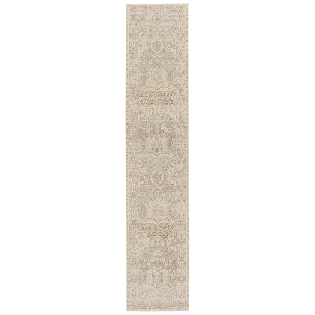 The elegant Vienne collection showcases the on-trend blanc de blanc look for an effortless and luxuriously vintage statement. The Michon rug boasts a subtly distressed brocade medallion motif in light tones of gray, cream, and ivory, with accents of metallic silver and bronze. Soft and lustrous, this chameleon-like design emulates the timeless style of a Turkish hand-knotted rug, but in an accessible polyester and viscose power-loomed quality.