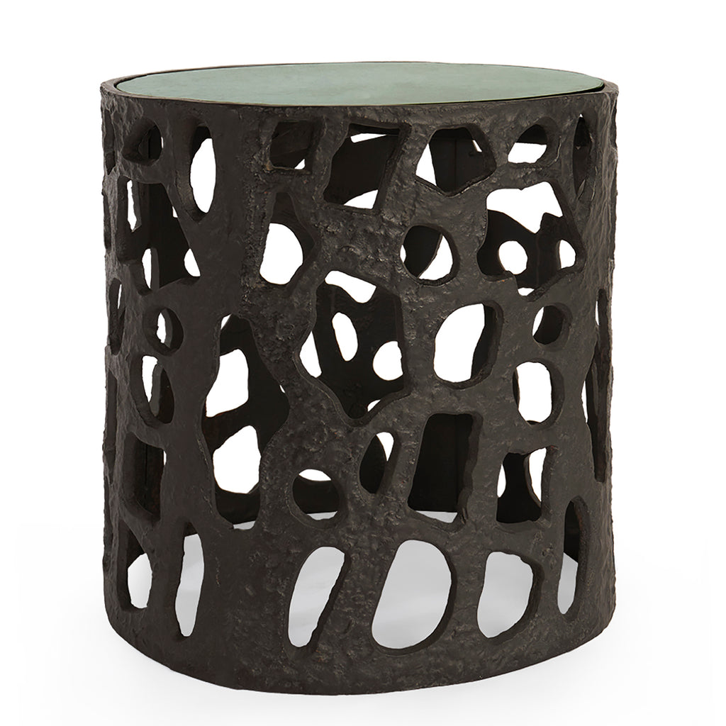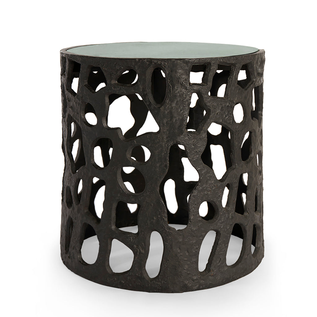 The Villa and House Shina Accent Table is a striking blend of organic elegance and natural luxury. Its base, crafted from blackened bronze, features a biophilic design that mimics the fluid, organic forms found in nature. Topping this artistic foundation is a stunning green marble top, offering a rich contrast of texture and color. The Shina Accent Table is a true statement piece, perfect for elevating any space with its unique, nature-inspired design.