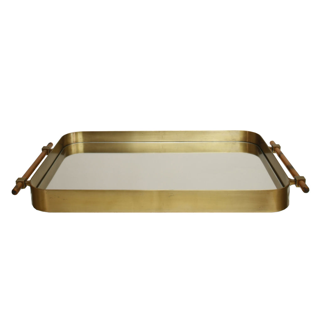Worlds Away expresses fresh, eclectic glamor in the home with this effortlessly chic decorative tray. With alluring lines, this gorgeous accent catches the eye upon a table or side table. Rounded edge antique brass frame tray with horn handles or inset mirror.