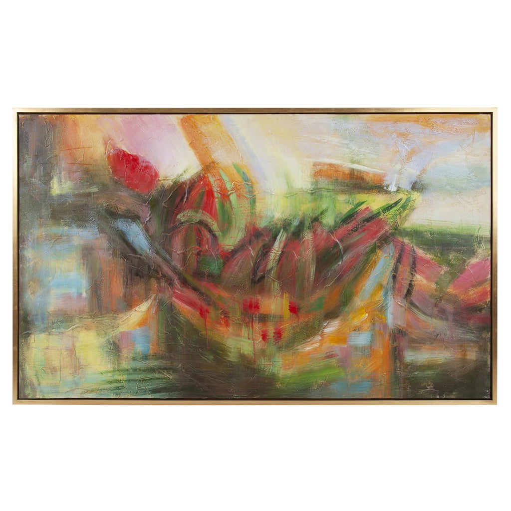 Inspired by celebrations of Bastille Day on a late July evening. The multi-colored fireworks and the display of national flags throughout the city created an abundance of color and texture for this piece.