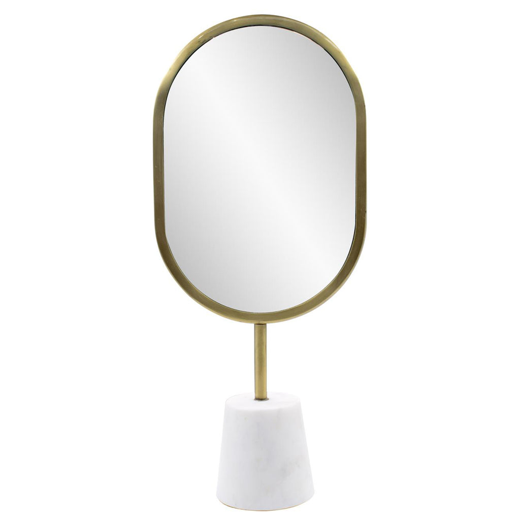 Sometimes a beautiful design does not have to be complicated. The simplicity of the Bogna mirrors with their antique brass frame and white marble base showcases elegance in a simple yet effective way. These small accent mirror are perfectly at home on your vanity, home office desk, or anywhere that you need a little reflectiveness. A classic mirror for a modern lifestyle.