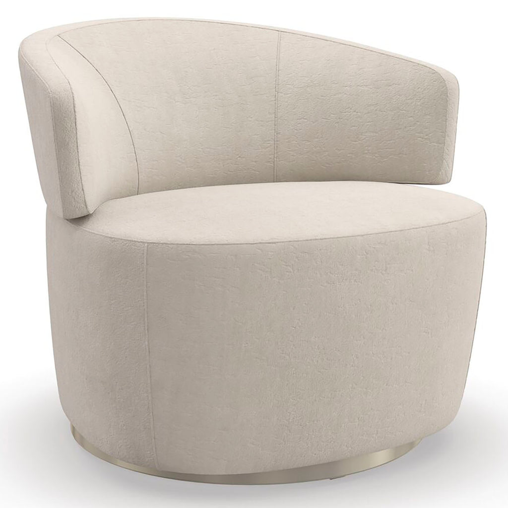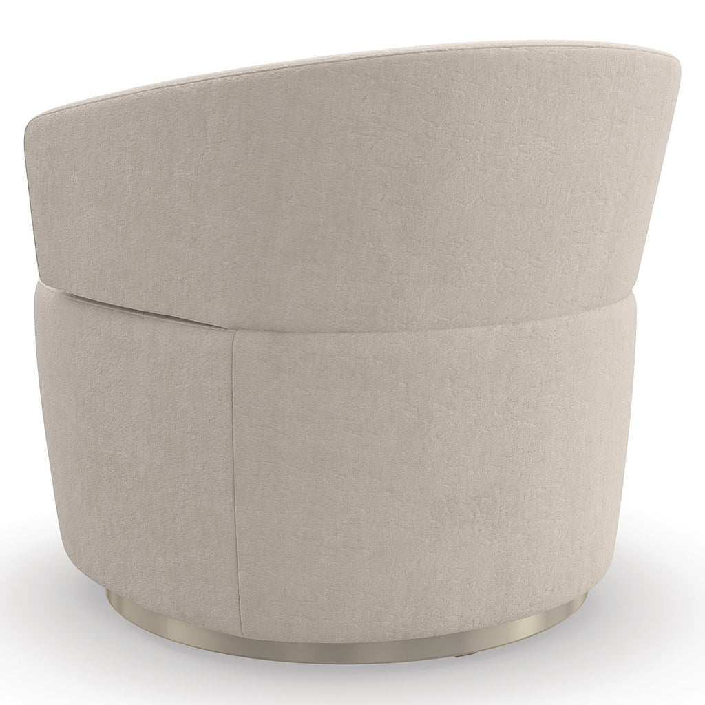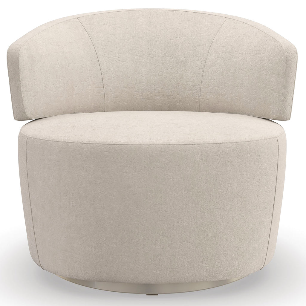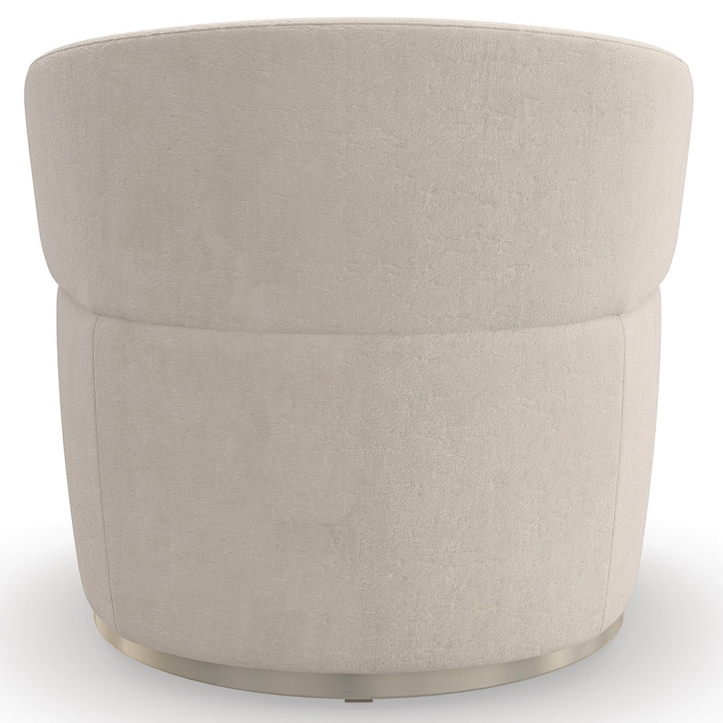 Reminiscent of a classic barrel-back, the Caracole Olympia chair makes a simple yet striking impression. Its Klismos-inspired shape features a comfortably curved back and generous seat, covered in a distressed ivory velvet and balanced on a Sparkling Argent-finished, wood plinth base. Style in pairs to create a relaxed yet sophisticated space for intimate entertaining and conversation.