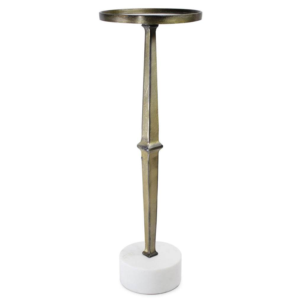 Our newest little drink table is packed with lots of elegant features such as an antique cast aluminum stand surrounded at the bottom with a beautifully rounded polished white marble base. The very top of the table is complete with a handsome antique mirrored surface. Small enough in size to tuck anywhere in the room and stylish enough to be in any decor, this Cin Cin table definitely lives up to it's Italian name. Cheers everyone.