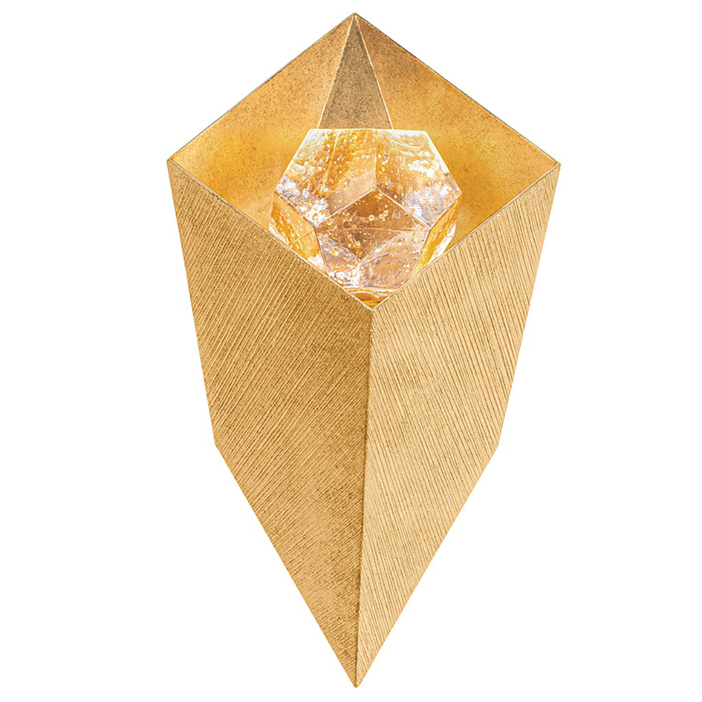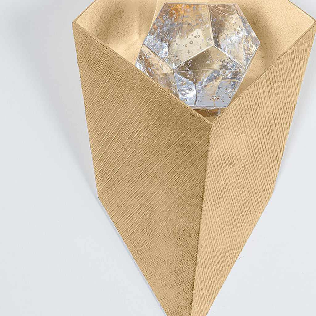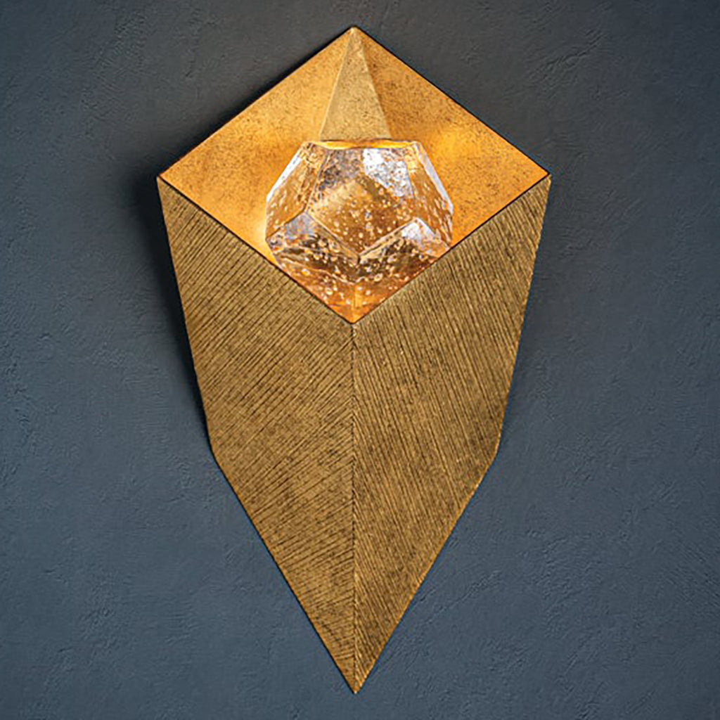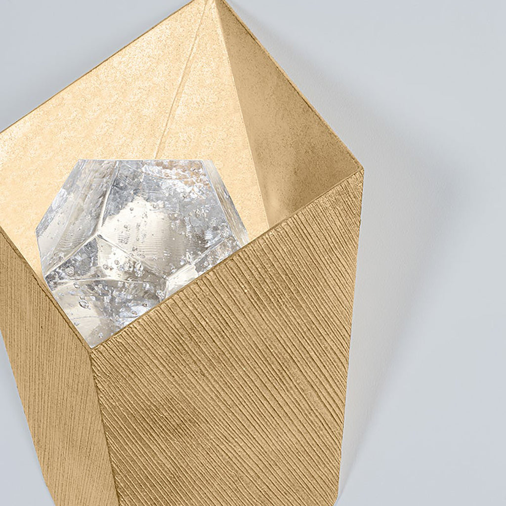 An unexpected treasure takes shape in this striking single light sconce. Like a pearl inside an oyster shell, Corbett Lighting Conch Wall Sconce features a faceted metal shade inlaid with a crystal glass jewel. An LED light source, shining light up illuminates the seedy, cast glass gem. A warm, Vintage Gold Leaf finish enhances this dazzling lighting experience. Part of our Noz Nozawa collection.