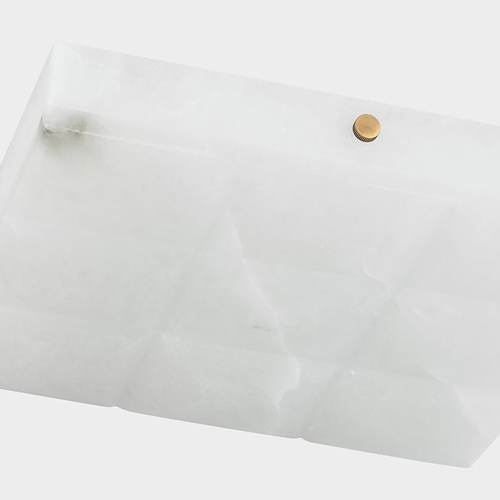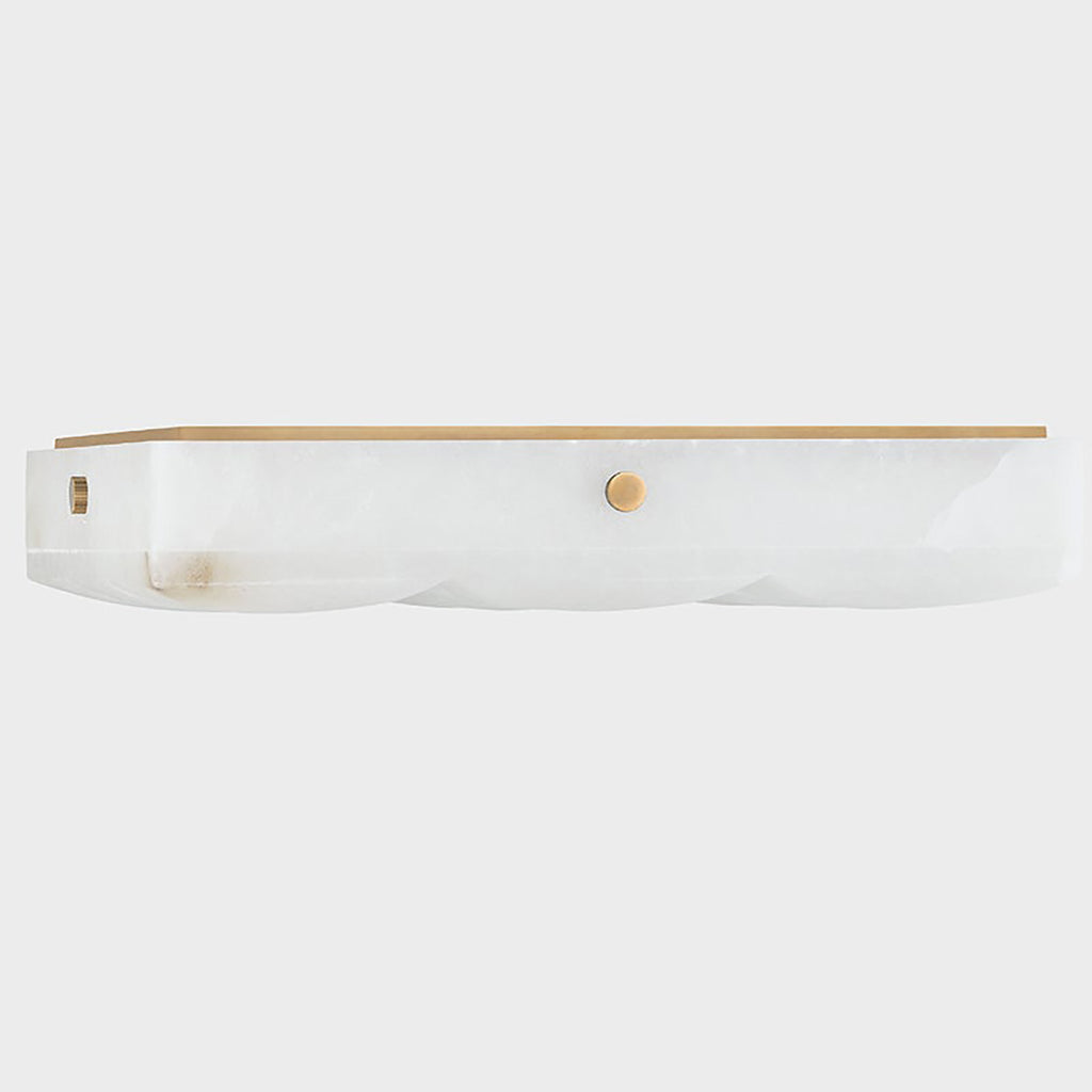 Letting the beauty of the alabaster shine, this distinctive sconce emits a warm, milky glow. The natural stone panels have been thoughtfully cut to accommodate smaller spaces, making them an ideal choice for hallways and bathrooms. Concealed within the fixture is an energy- efficient LED, ensuring hours of luminous and efficient lighting.