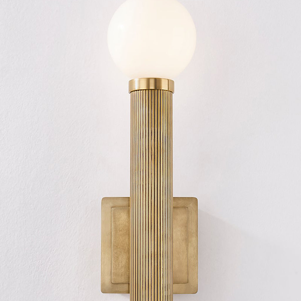 Minimal, yet bold, Corbett Lighting Pienza Wall Sconce elevates industrial design concepts with a touch of old Hollywood glamor. Each Vintage Brass tube supports two glass orbs at either end, creating a sense of perfect equilibrium. Blurring the line between art and design, Corbett Lighting Pienza comes as a sconce in two sizes or as a chandelier of stacked tubes.
