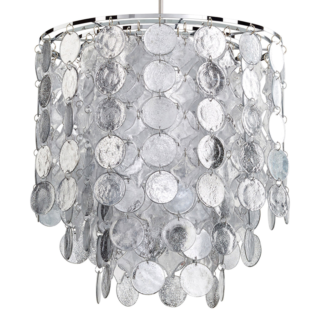 Promote a festive, lighthearted ambiance and a blend of understated luxury with the Carina pendant. This elegant nine-light, polished nickel and glass pendant presents a look of shattered silver and clear disks dancing above a treasured dining ensemble or entryway. Choose this glass and polished nickel pendant to make a statement in a contemporary space.