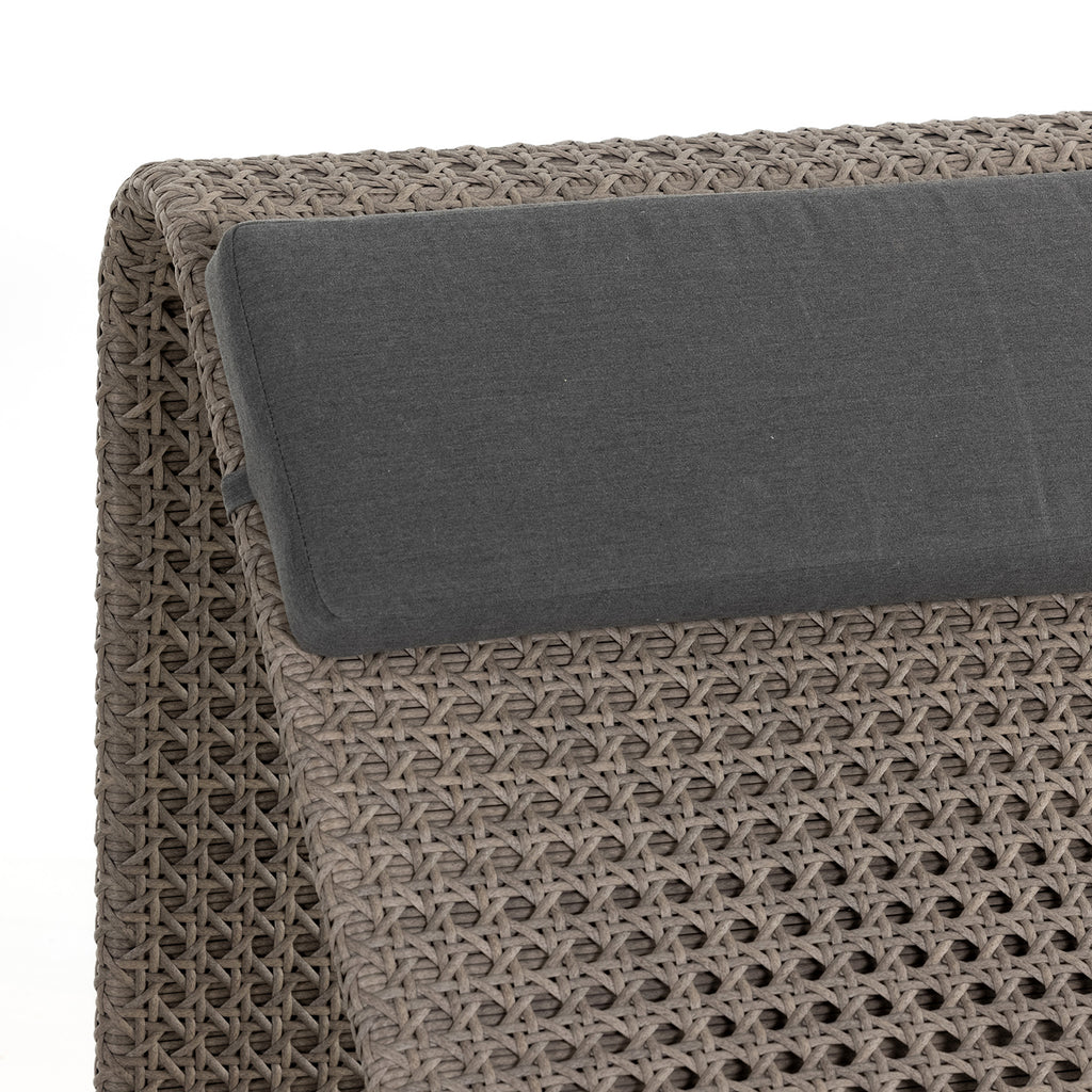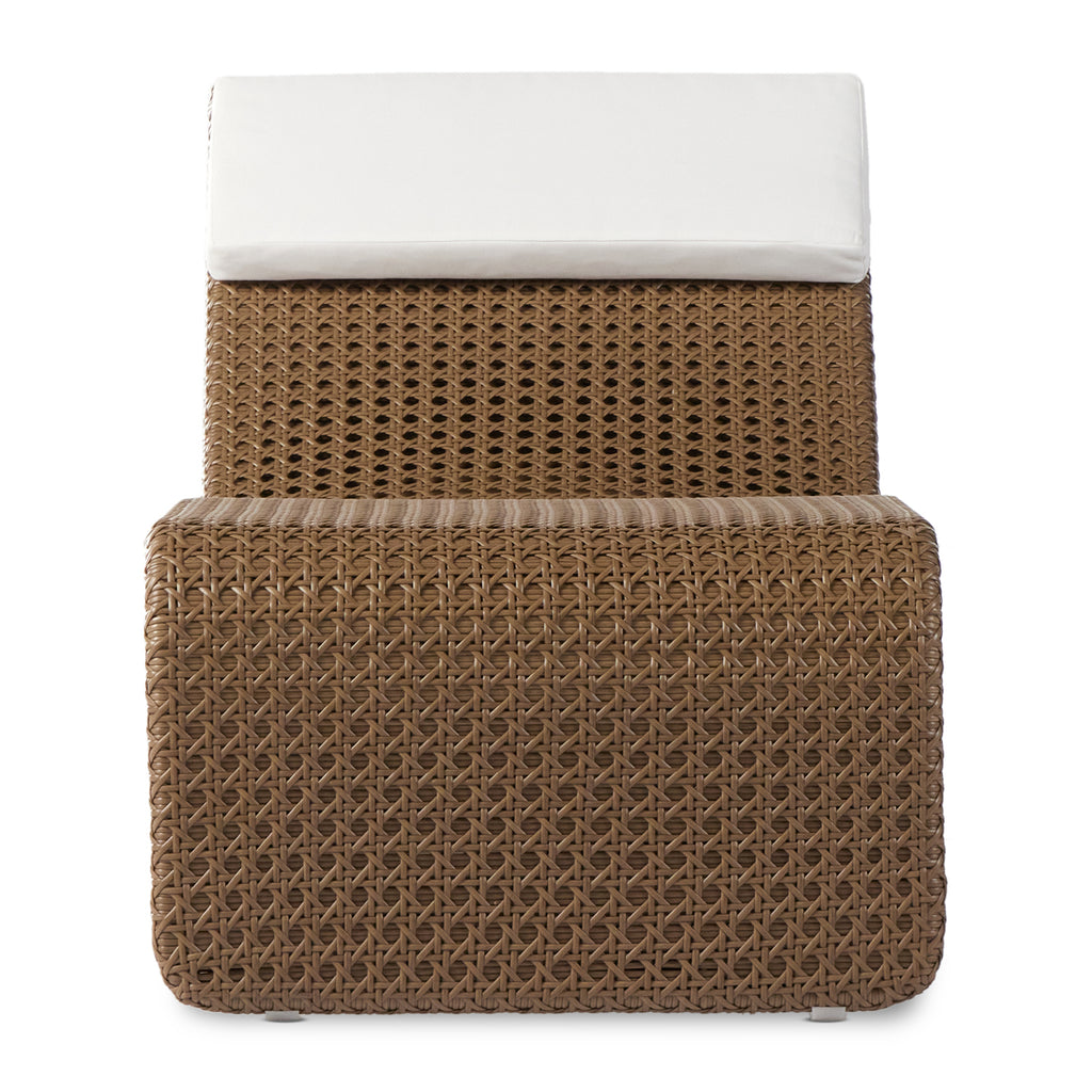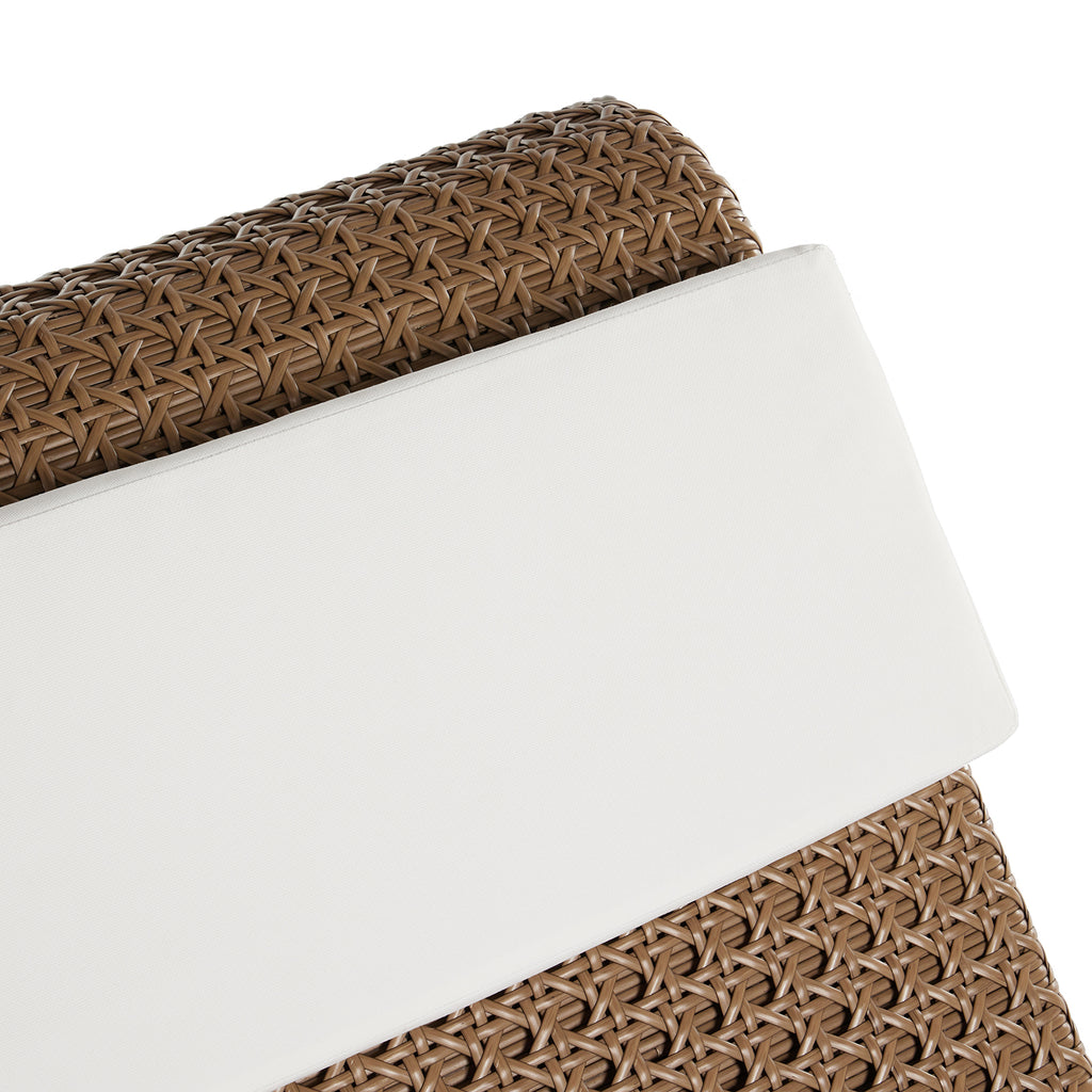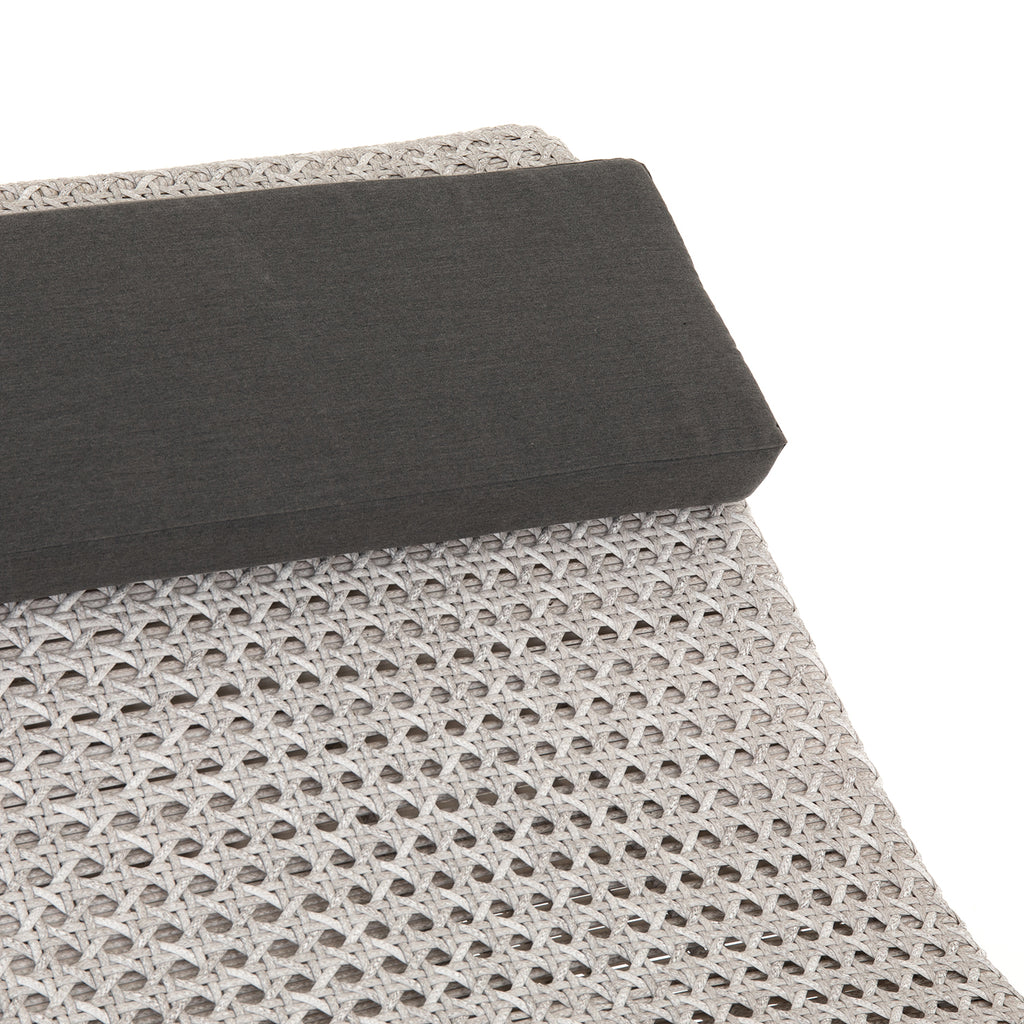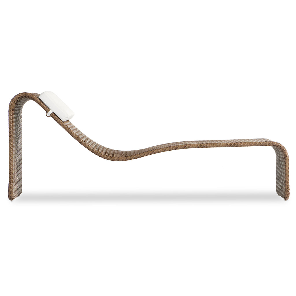 Ahead of the curve. A neutral woven chaise and detachable pillow are prime for outdoor lounging. Style solo or in multiples. Cover or store inside during inclement weather and when not in use.